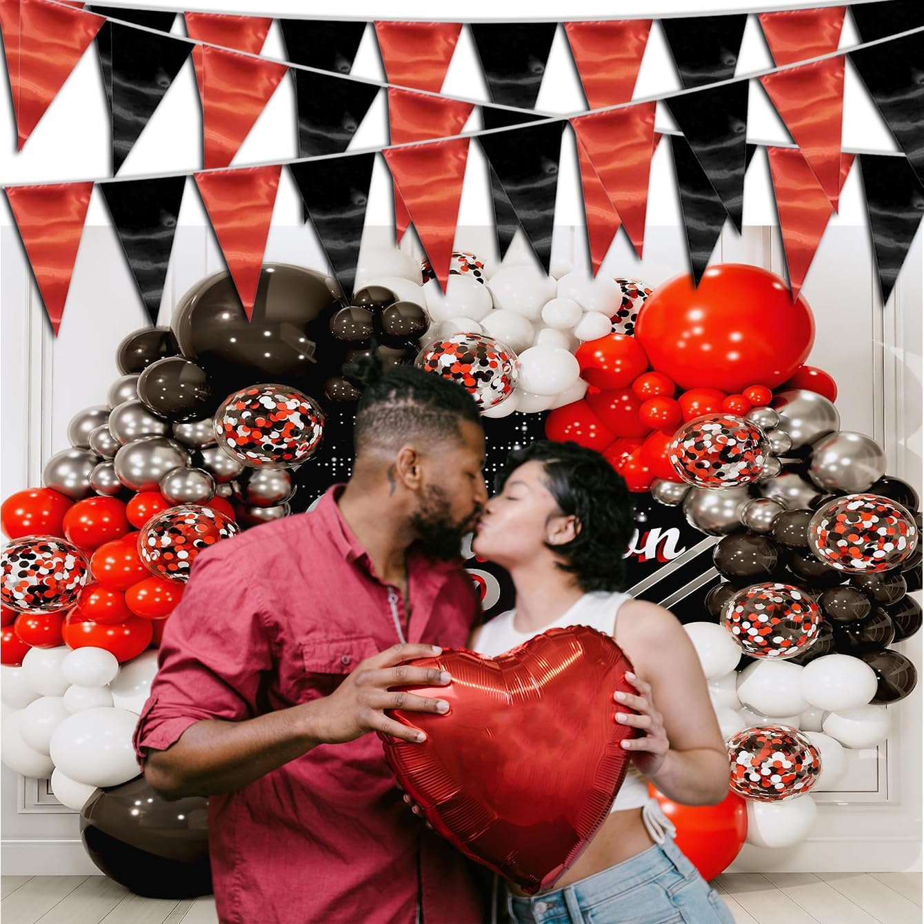 65FT Red Black Triangle Pennant Banner Flag Metallic Fabric Bunting Garland for Christmas Graduation Bachelorette Anniversary Birthday Engagement Wedding Anniversary Casino Party Decorations Supplies