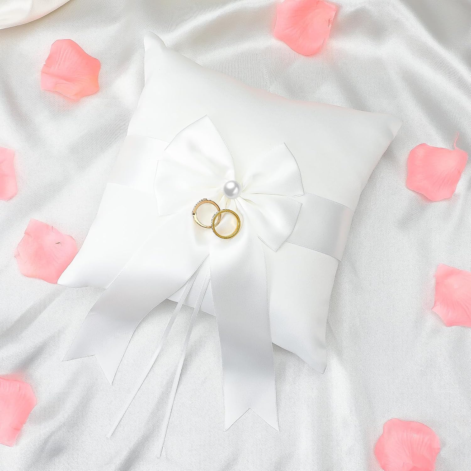 - 【Package Included】You can receive 1 pearl ring pillow. This satin pillow is the best choice for displaying rings, necklaces, bracelets, and other wedding jewelry.