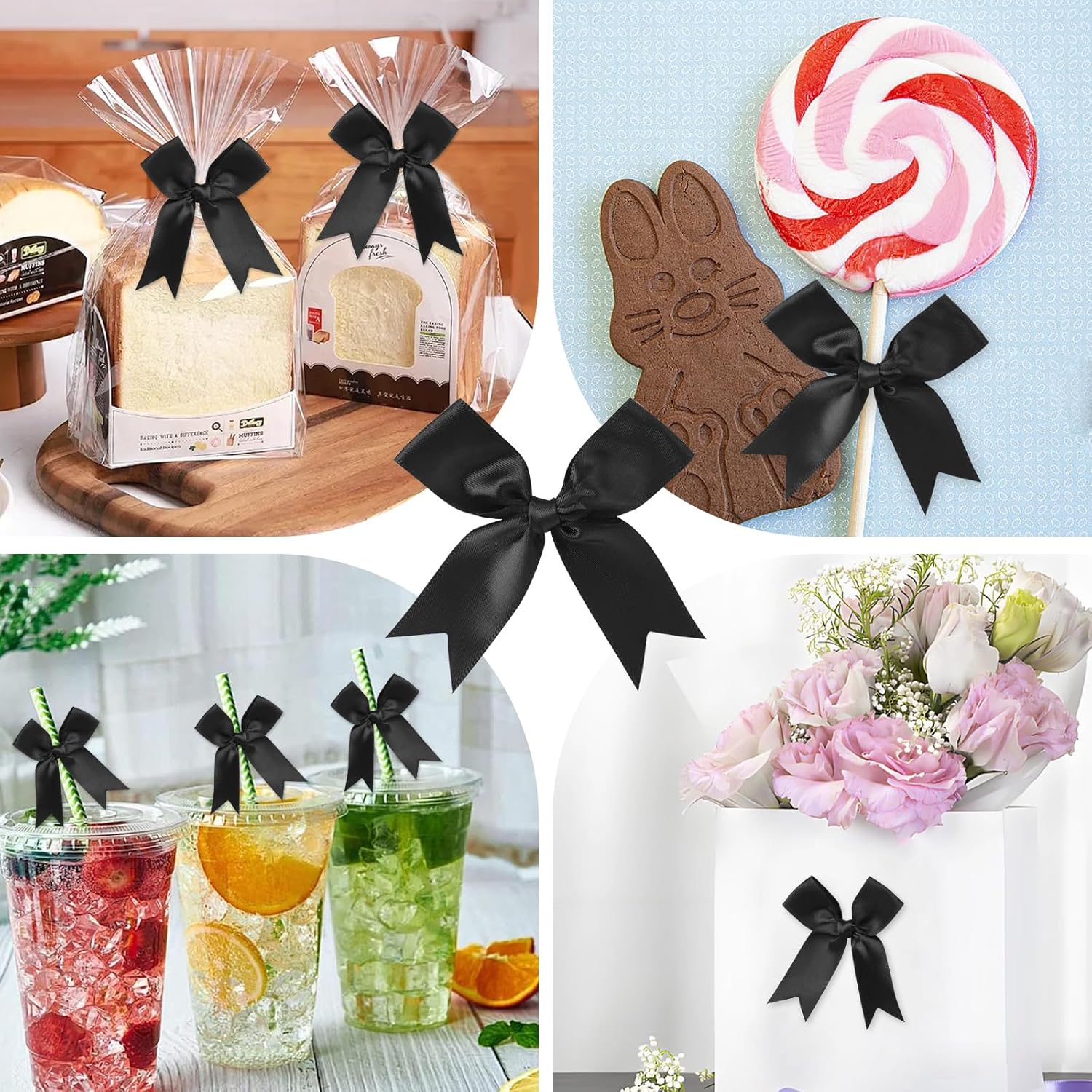 Feluwi Black Gift Wrap Bows (50 Pcs) - 3.3 Inch Elegant Plastic-Free Bows for Christmas Gifts, Birthday Presents, Wedding Friendly Party Supplies, Baby Shower, Gift Bags Decorative Accessories