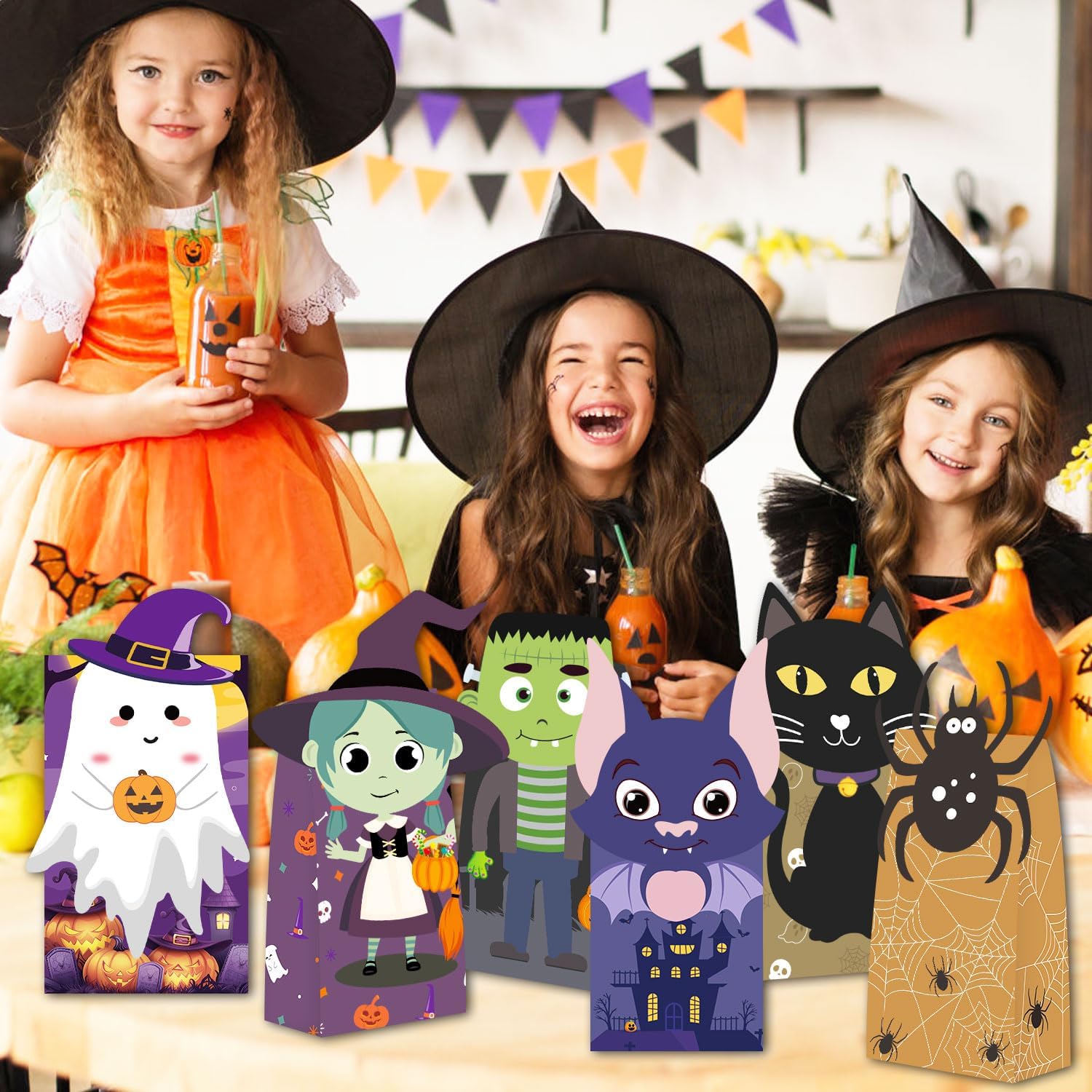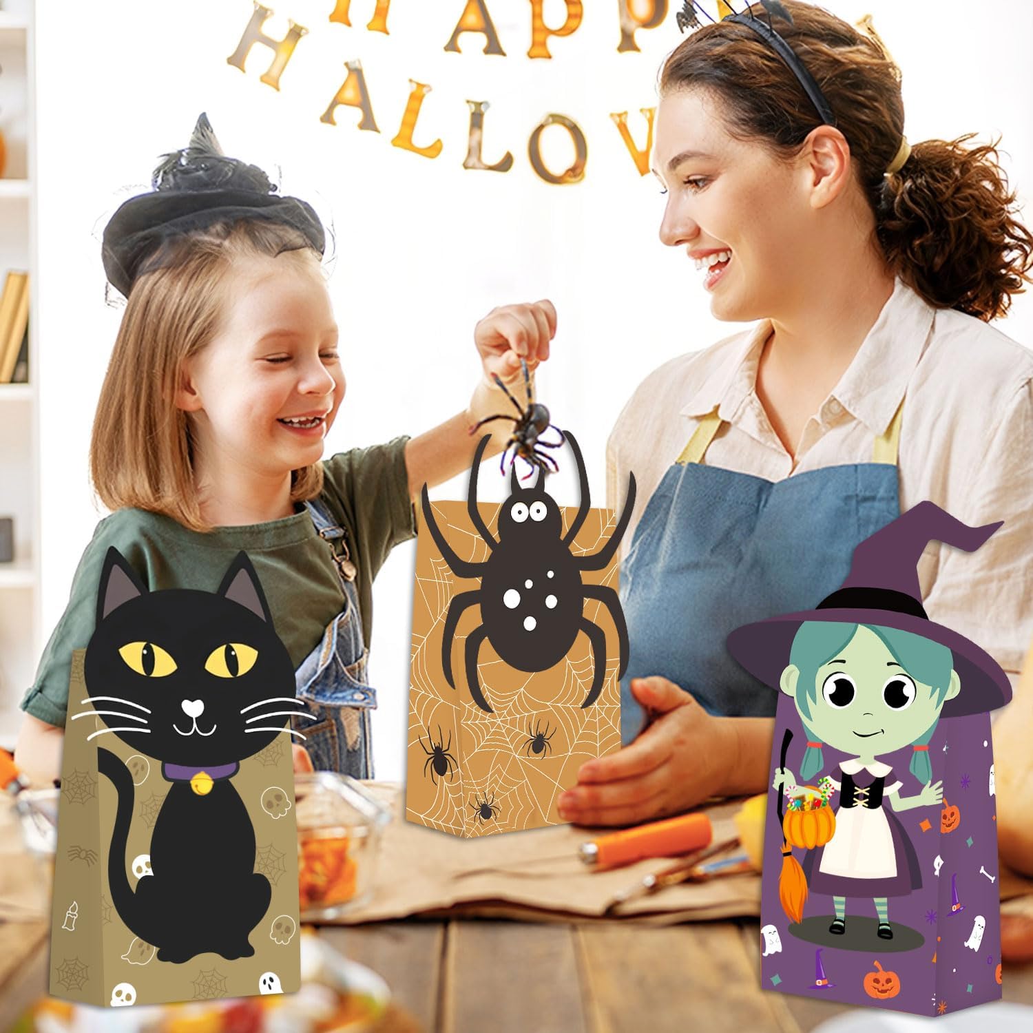 - 24 Halloween Treats Bags:There are 6 different cute designs, such as spiders, tree devils, bats, witches and other super cute patterns, 4 pieces of each Halloween pattern, whether it's a gift for party, or used to decorate the party, this set of halloween goodie bags is the best selection