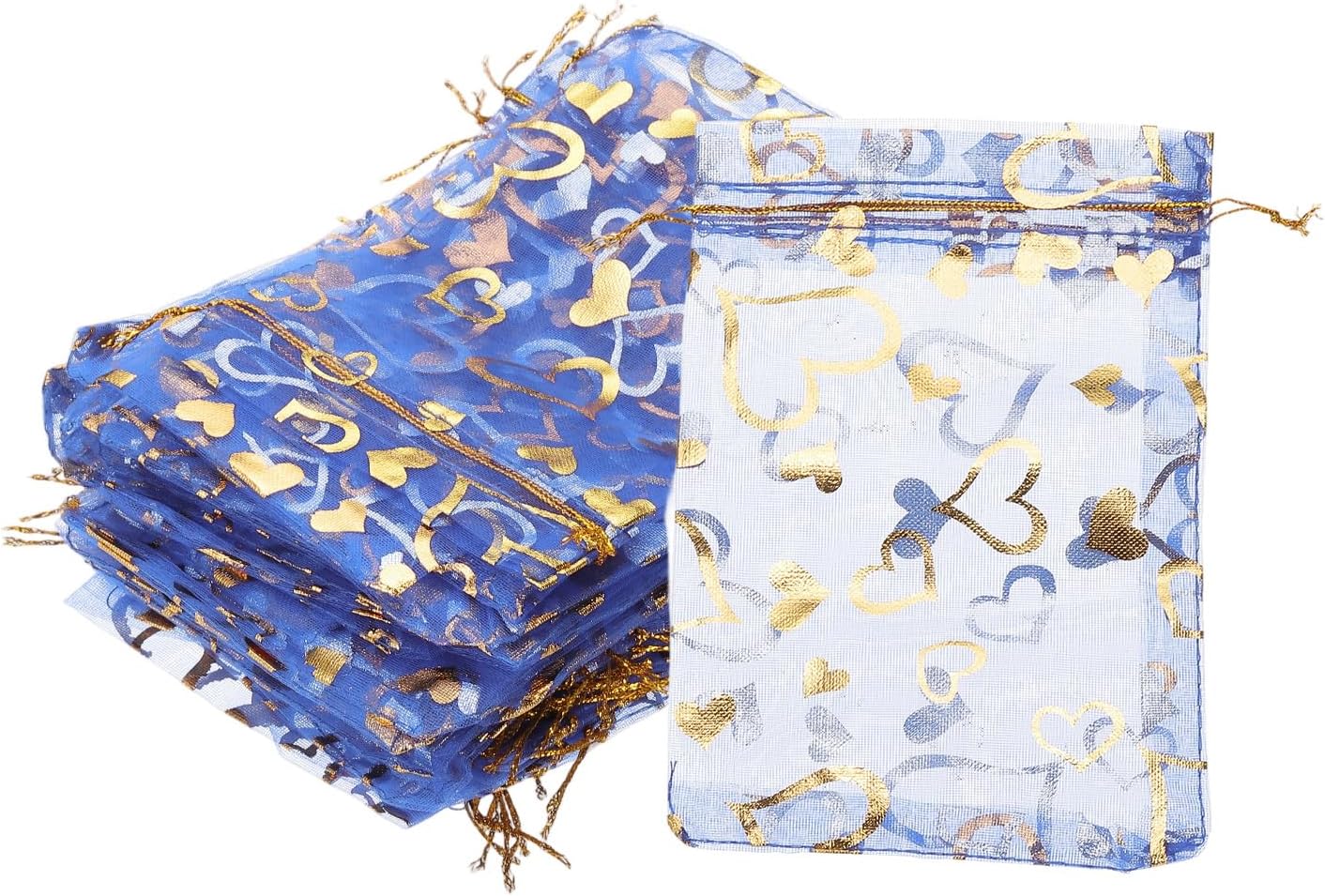 - Color: Navy Blue; Material: Polyester; Size: 16x11 cm/6.3x4.33 Inch(L*W); Packing List: 100 Pcs x Heart Printed Organza Bags (NOTE: Please confirm the size before choosing our product)