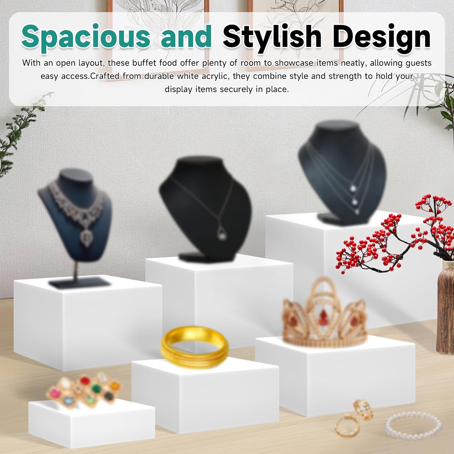 - Perfectly Proportioned Design Buffet risers crafted with an ideal balance of sizes—12-10-8 inches—each acrylic white acrylic risers brings a touch of elegance and harmony to any setup. Whether used on its own or stacked, it adds an eye-catching appeal to your presentation.