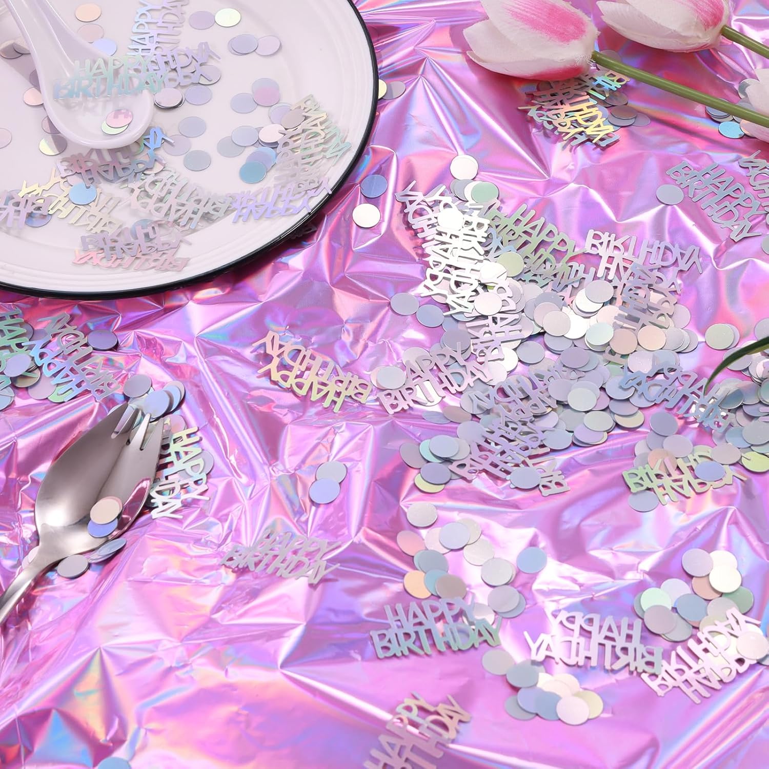Iridescent Happy Birthday Confetti, 3000 Pcs Birthday Cake Table Metallic Foil Confetti Party Table Decor for Party, Baby Shower, DIY Arts and Crafting