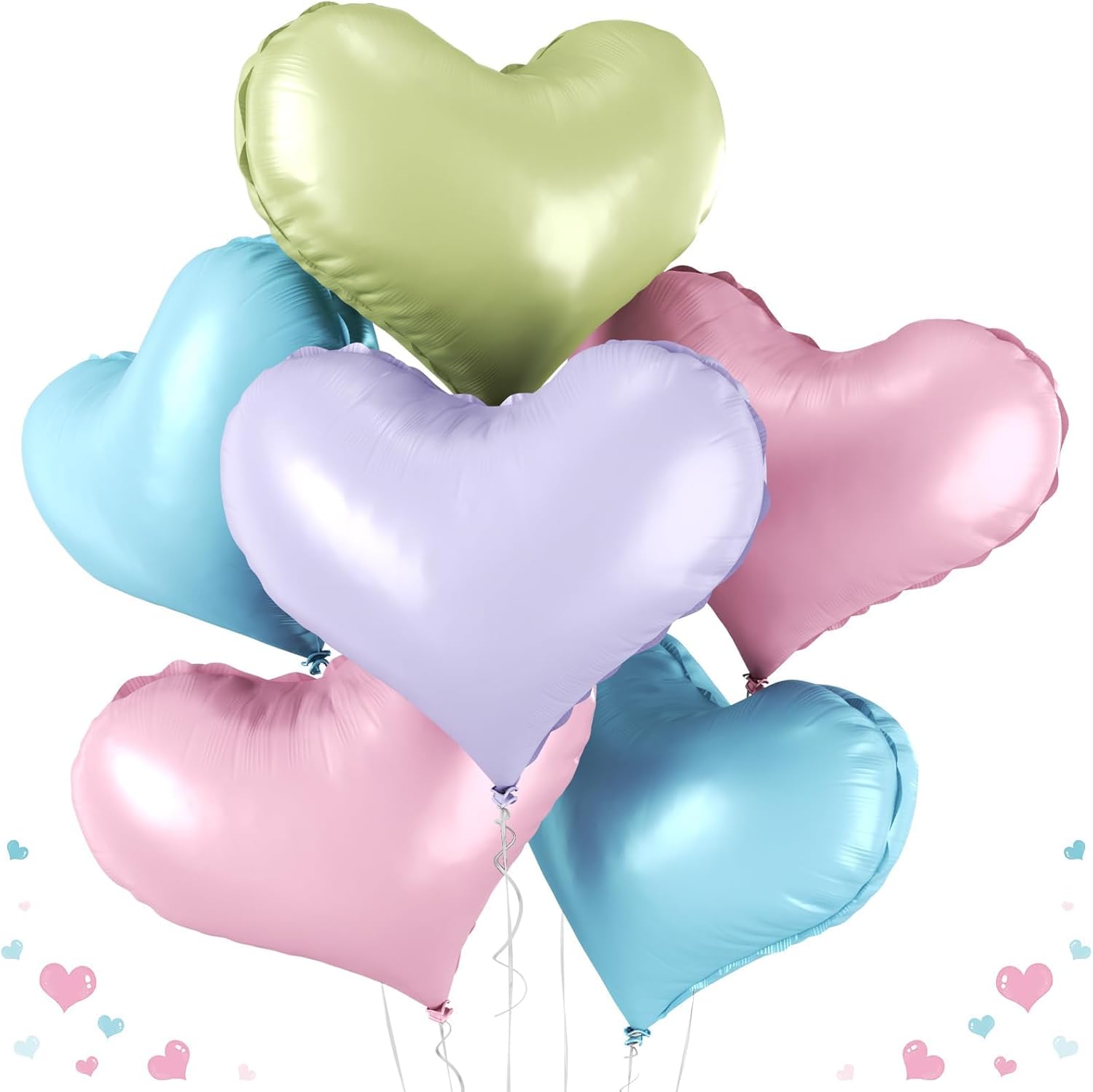 24 Inch Pastel Colorful Heart Balloons, Light Pink Blue Green Purple Balloons, Romantic Helium Balloon for Valentines Day Baby Bridal Shower Wedding Birthday Party Decorations
