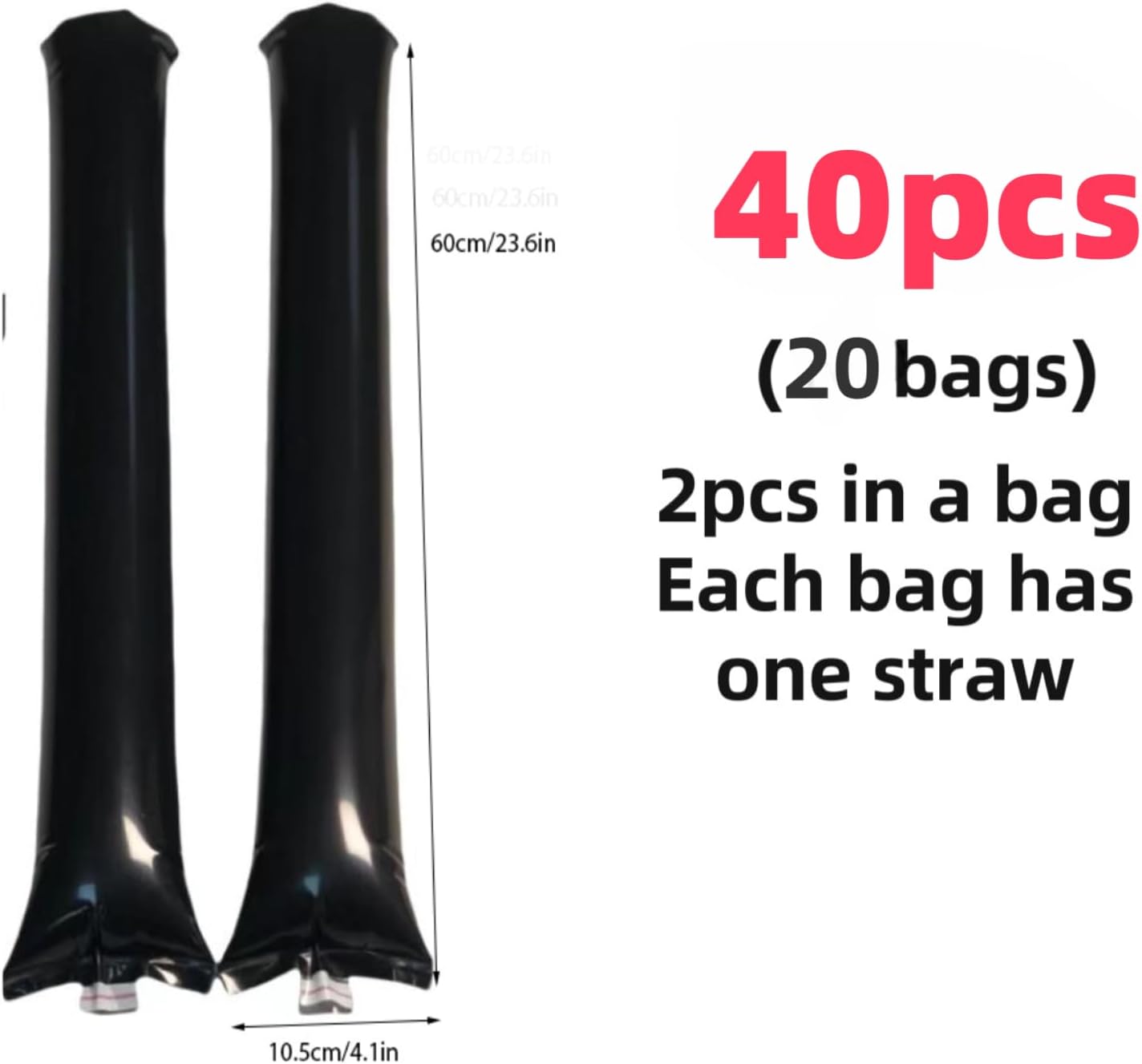 40pcs Round headTeam Spirit Boom Sticks Thunder Sticks Cheering Sticks Team Spirit Plastic Cheerleading Spirit Stick Clapper Inflatable Noise Maker Sports Supply (Black)