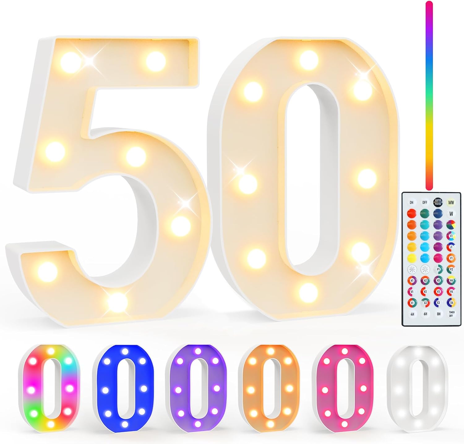 Pooqla 50th Birthday Decorations for Her Him, 35 Colors LED Light Up Numbers with Remote, Multicolor Marquee Numbers 50 Sign for Party Wedding Anniversary Decor 50th Birthday Gift, Number 50