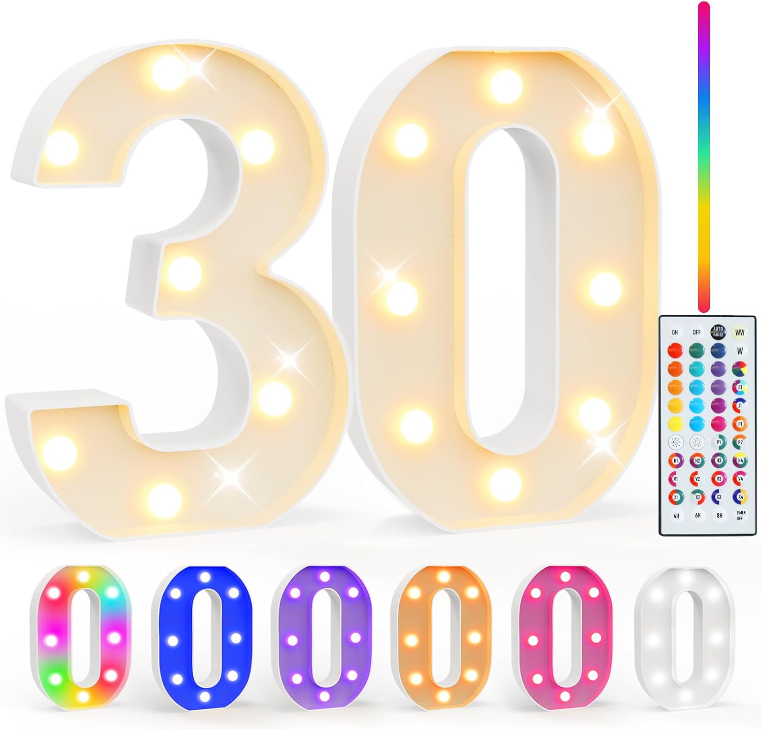 Pooqla 30th Birthday Decorations for Her Him, 35 Colors LED Light Up Numbers with Remote, Multicolor Marquee Numbers 30 Sign for Party Wedding Anniversary Decor 30th Birthday Gift, Number 30