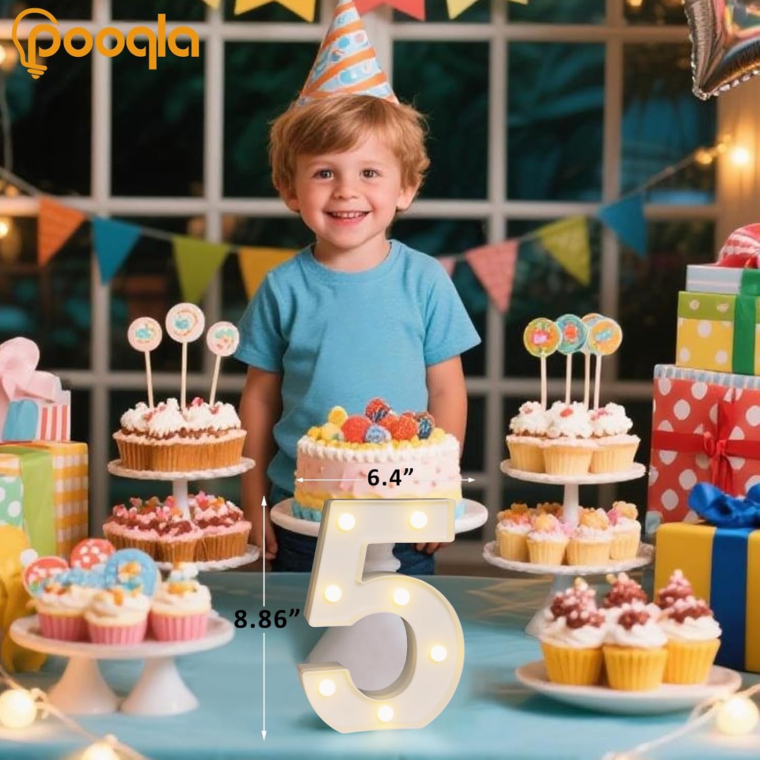 Pooqla Colorful Lighted Numbers with Remote, 35 Colors Light Up Numbers for Party, RGB LED Marquee Number Lights Gift for 5th Birthday Decorations, Wedding, Bar, Night Light, Home Decor, Number 5