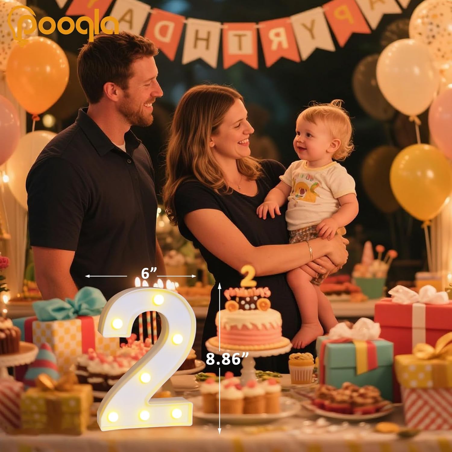 Pooqla Colorful Light Up Numbers, 35 Colors LED Marquee Number Lights for 2nd Birthday Decorations with Remote, RGB Lighted Numbers Gift for Girls Boys Party Night Light Wedding Home Decor, Number 2