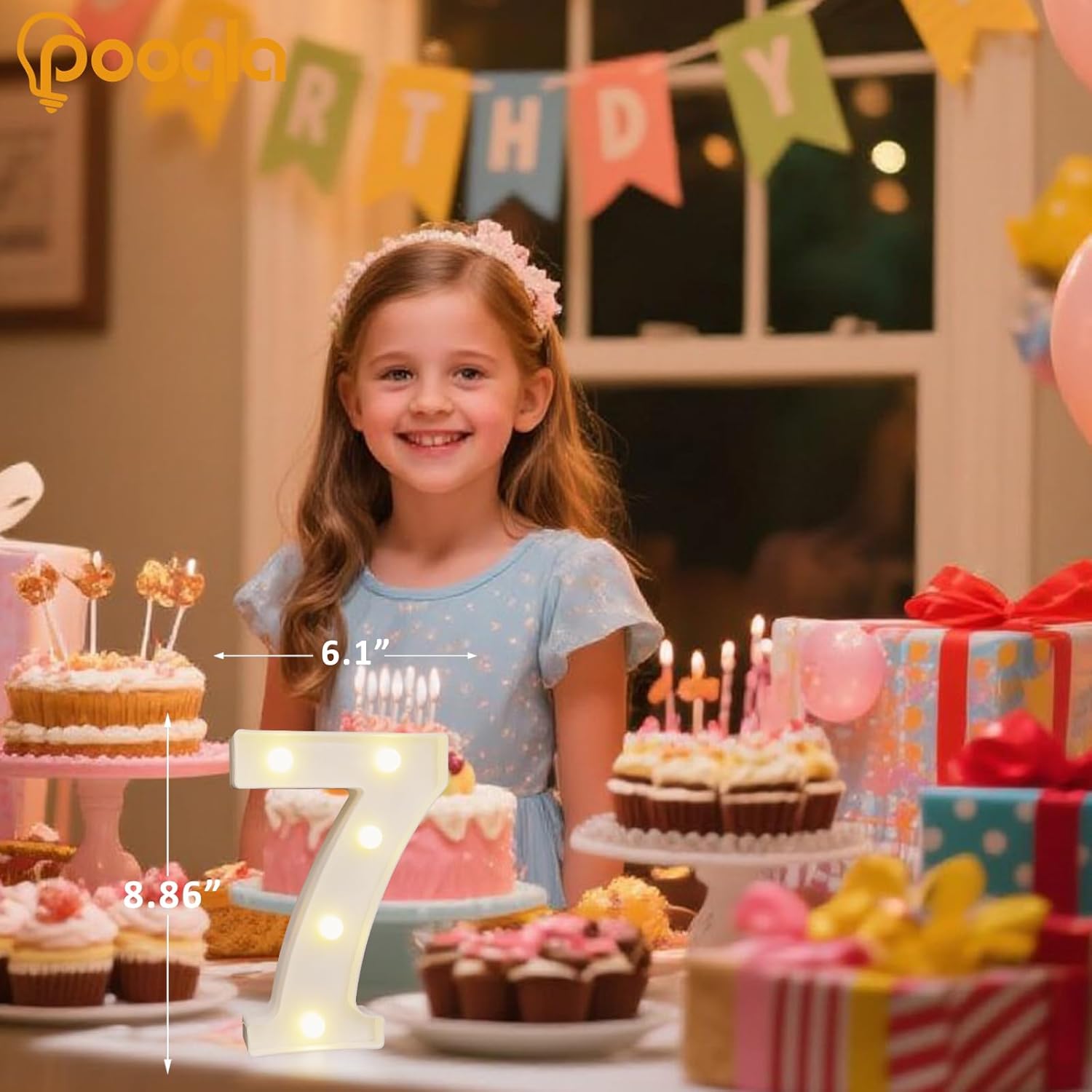 Pooqla Colorful Lighted Numbers with Remote, 35 Colors Light Up Numbers for Party, RGB LED Marquee Numbers Gift for Girls Boys 7th Birthday Decorations, Wedding, Bar, Night Light, Home Decor, Number 7