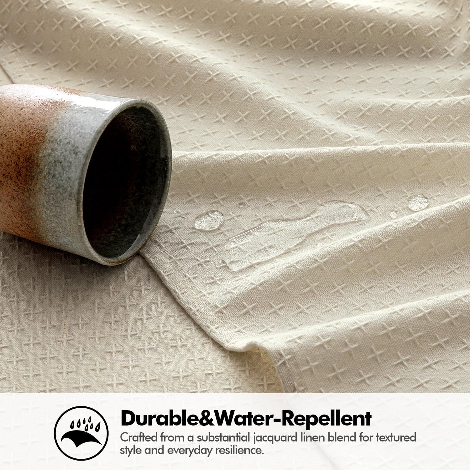 - Elegant Texture: Expertly woven from a heavy-duty cotton-linen blend, 30% thicker than standard tablecloths. Designed with a refined cross-star jacquard weave, it offers a luxurious and elegant look. Natural is neutral and versatile, perfect for blending with any dining décor.