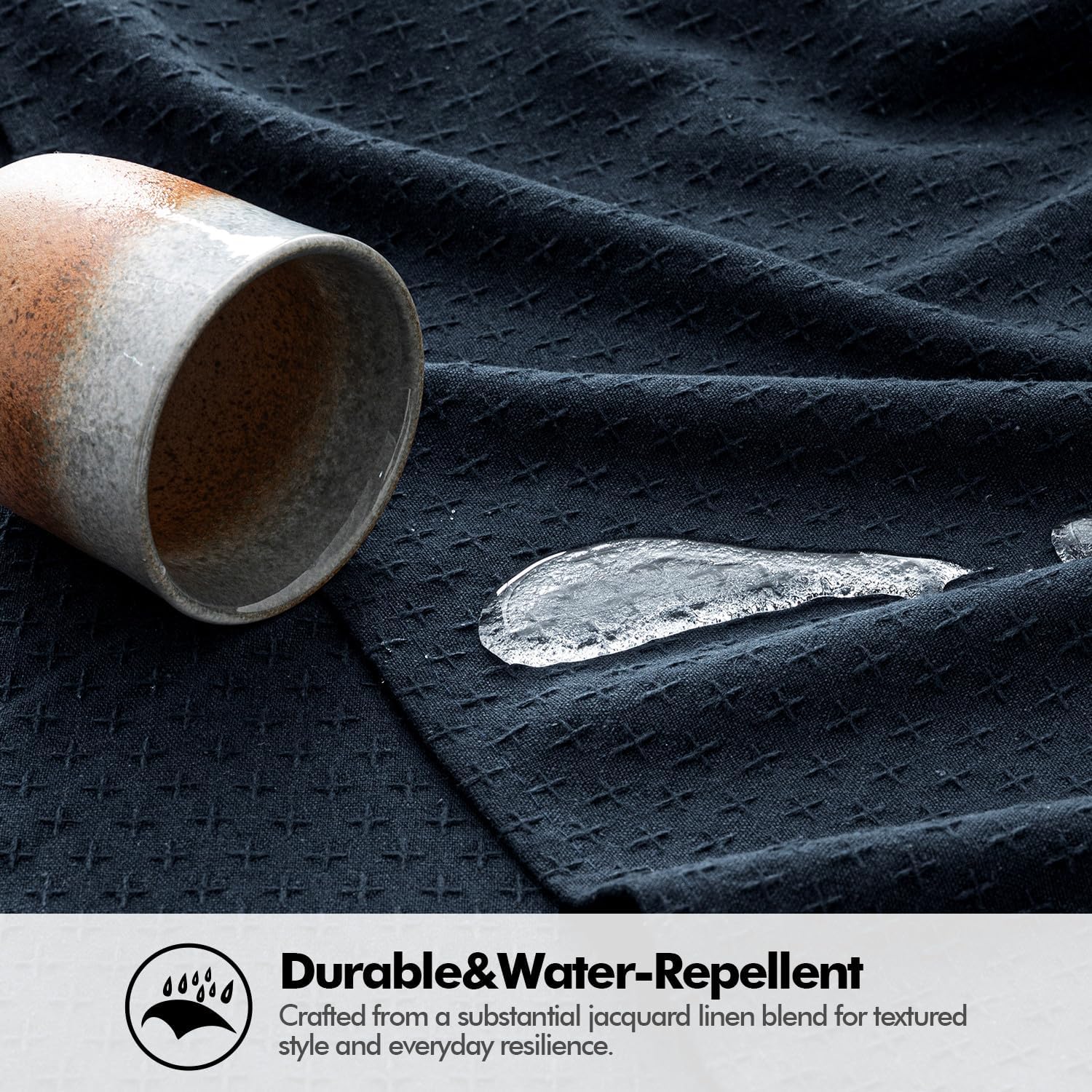 - Elegant Texture: Expertly woven from a heavy-duty cotton-linen blend, 30% thicker than standard tablecloths. Designed with a refined cross-star jacquard weave, it offers a luxurious and elegant look. Navy is bold and refined, creating depth and sophistication for any dining setting.