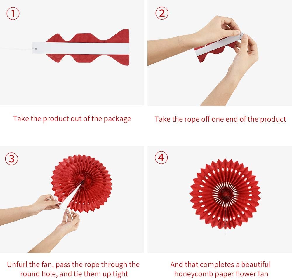 - 【Easy to assemble and uniquely designed 】These hanging paper fans have a hanging string attached,just unfold the paper flower fan and fix it with the rope of the paper flower fan, then you can hang it to your favorite place and decorate your party perfectly in a few minutes.