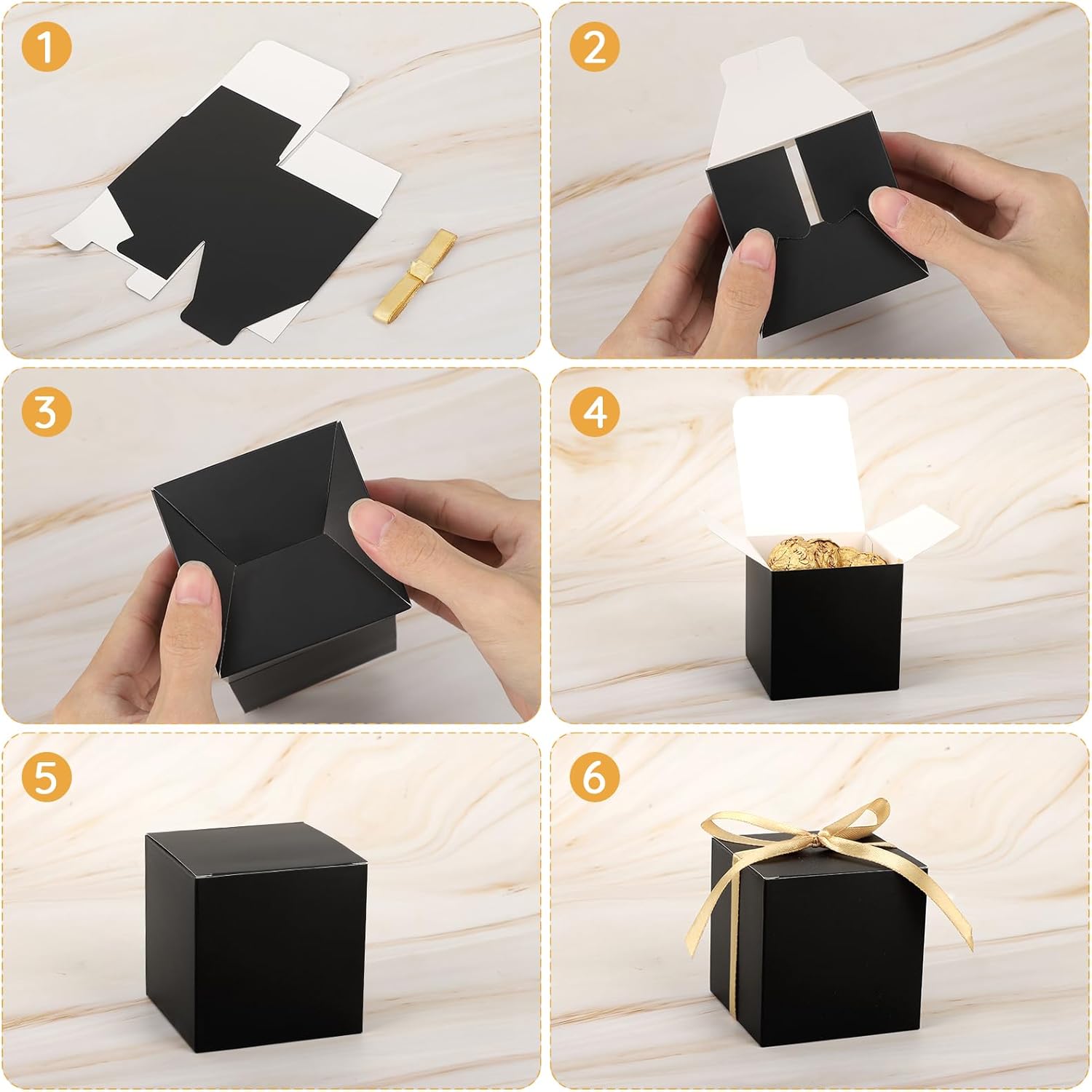 - 【Package Included】You will receive a set of 30 black candy boxes with gold ribbon, each measuring 3x3x3 inches(7.6x7.6x7.6cm). Good for storing small gifts, adding a touch of charm.