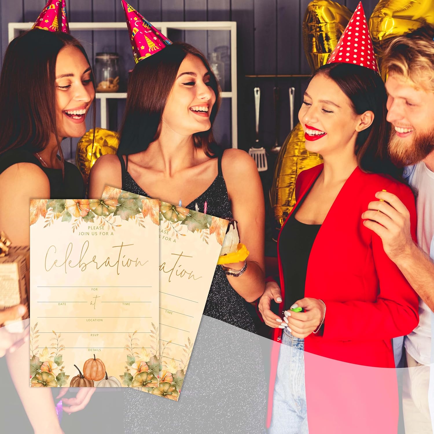 Join Us For A Celebration - Autumn Invitation Cards with Envelopes Pack of 20 (4"x6") - Pumpkin Leaf Autumn Themed Invitations for Baby Shower, Wedding, Bridal Shower, Baptism, etc.(153)