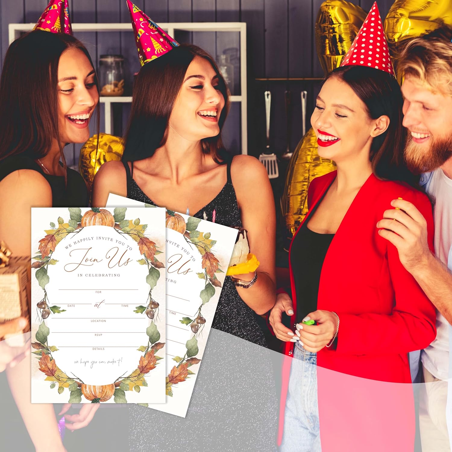 Join Us In Celebrating - Fall Invitation Cards with Envelopes Pack of 20 (4"x6") - Pumpkin Leaf Autumn Themed Invitations for Baby Shower, Wedding, Bridal Shower, Baptism, etc.(152)