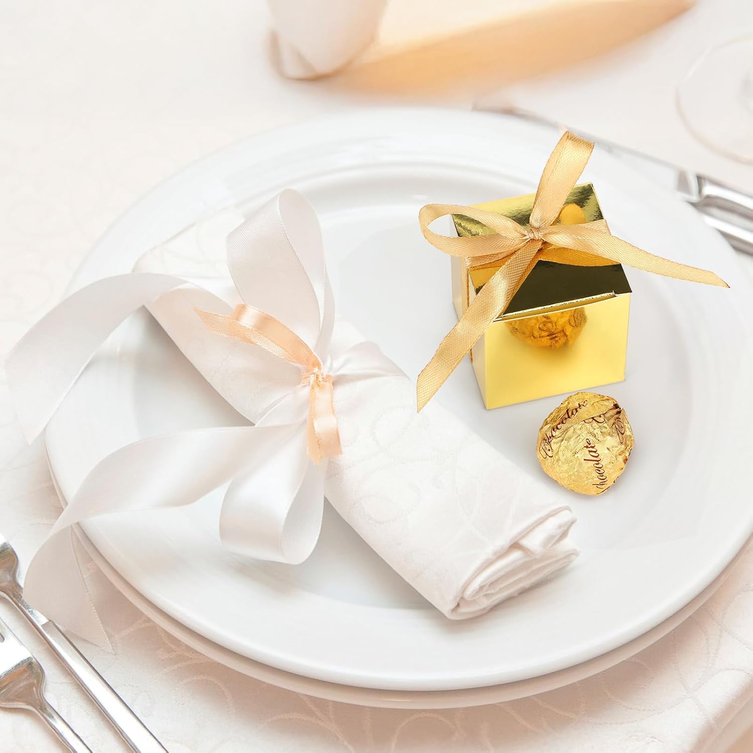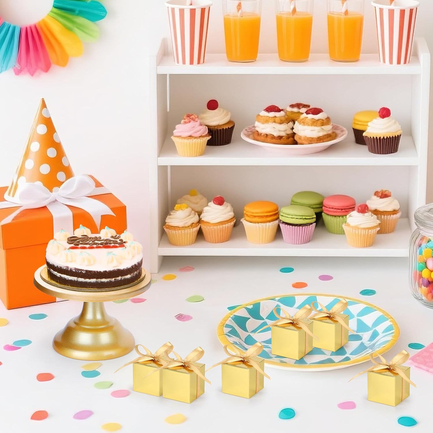 - 【Package Included】You will receive a set of 120 gold candy boxes with gold ribbon, each measuring 2x2x2 inches(5x5x5cm). Good for storing small gifts, adding a touch of charm.