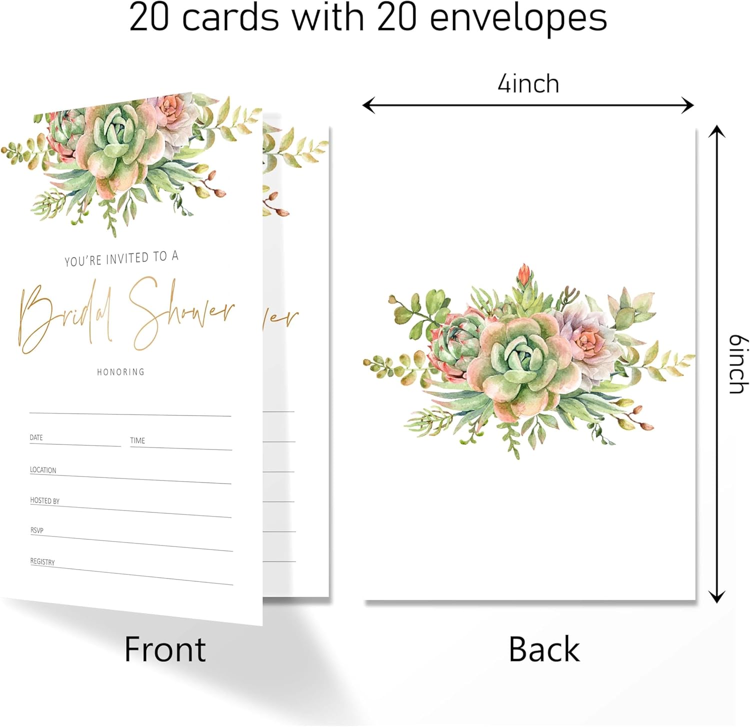 Floral Bridal Shower Invitation Cards with Envelopes Pack of 20 (4"x6") - Bridal Shower Invitations.(163)