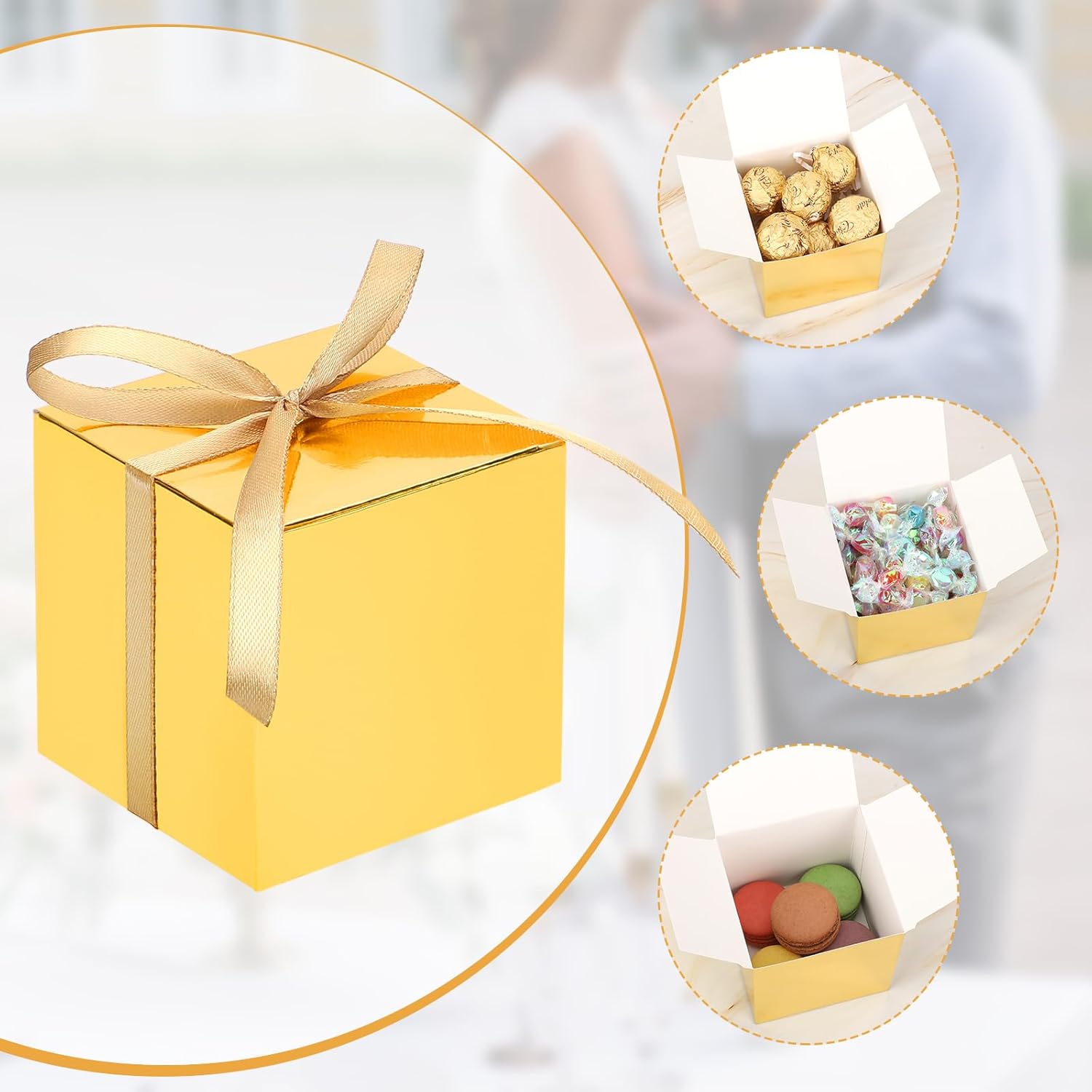 - 【Package Included】You will receive a set of 30 gold candy boxes with gold ribbon, each measuring 3x3x3 inches(7.6x7.6x7.6cm). Good for storing small gifts, adding a touch of charm.