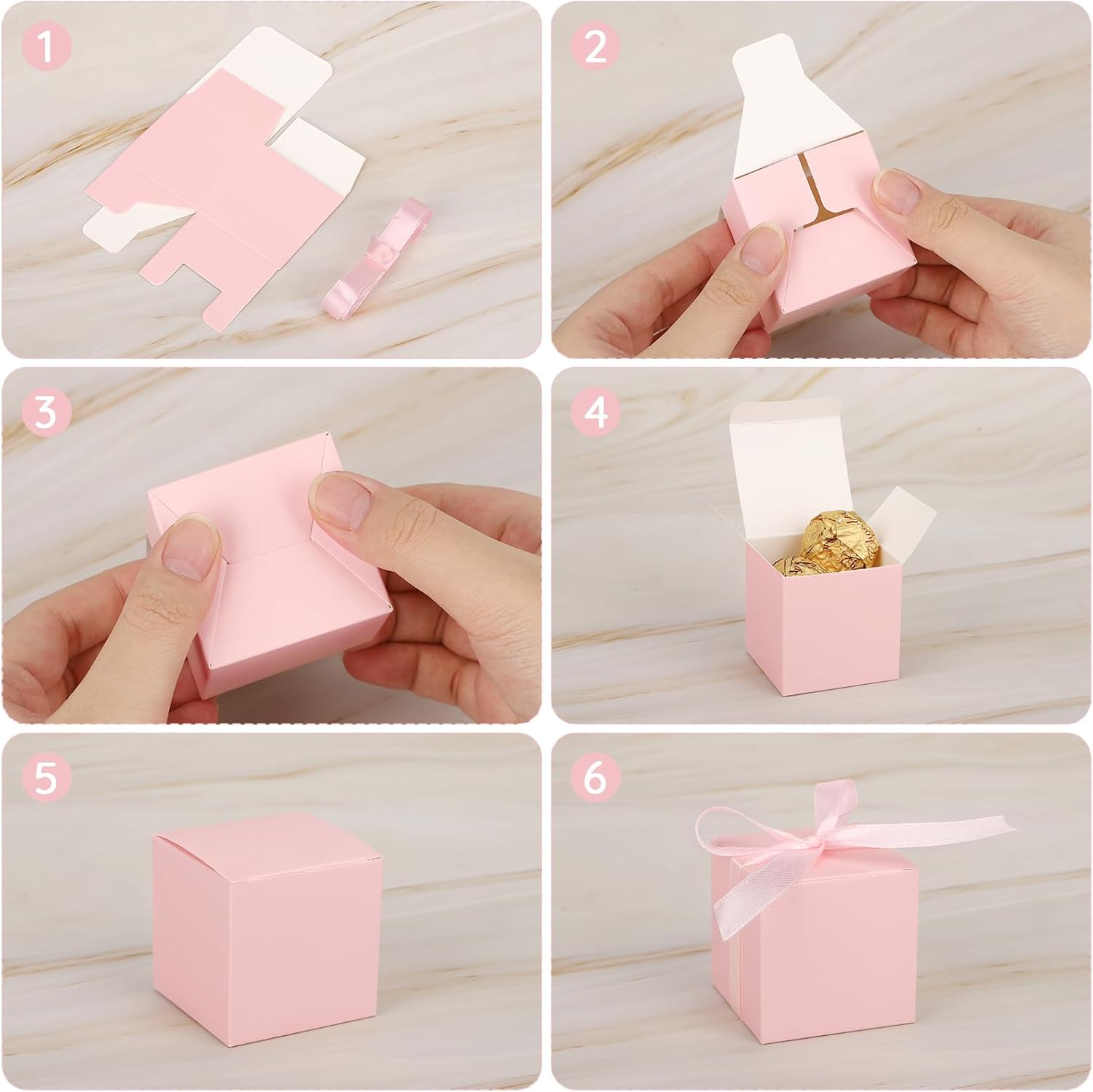 - 【Package Included】You will receive a set of 120 pink candy boxes with pink ribbon, each measuring 2x2x2 inches(5x5x5cm). Good for storing small gifts, adding a touch of charm.