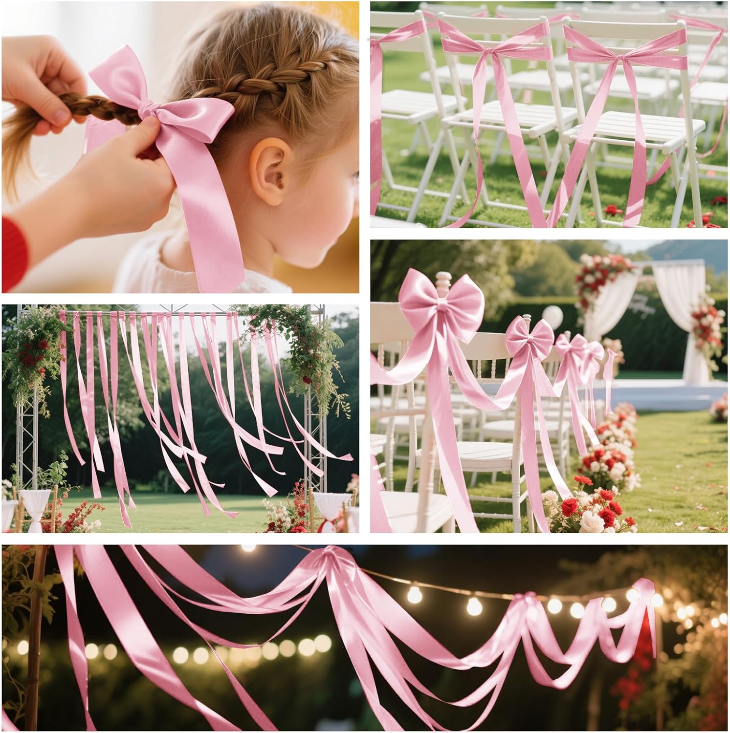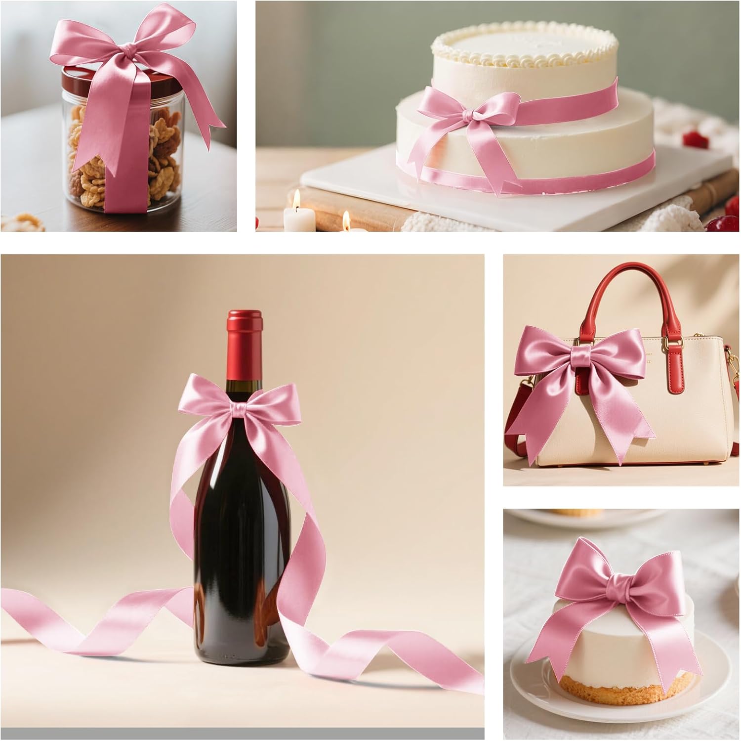 - Premium Satin Quality: Made from 100% durable polyester fabric with a silky smooth surface and stitched edges, double faced, this pink ribbon offers a glossy look that won’t fray easily, making it perfect for long-lasting use.