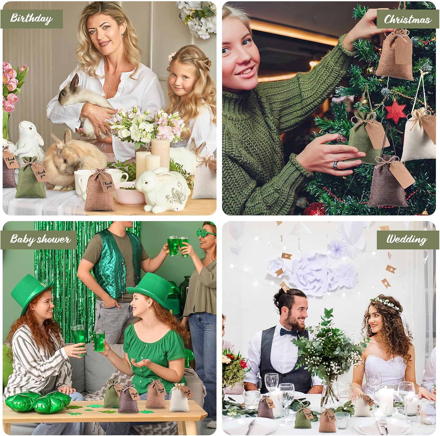 - Wide Occasions: these burlap treat bags are ideal for home parties, weddings, anniversaries, birthdays, bridal showers, housewarming, travel, holiday celebrations, family reunions, Valentine's Day, Christmas, Thanksgiving, New Year and other festivals, giving small gifts to friends and family members during the holidays