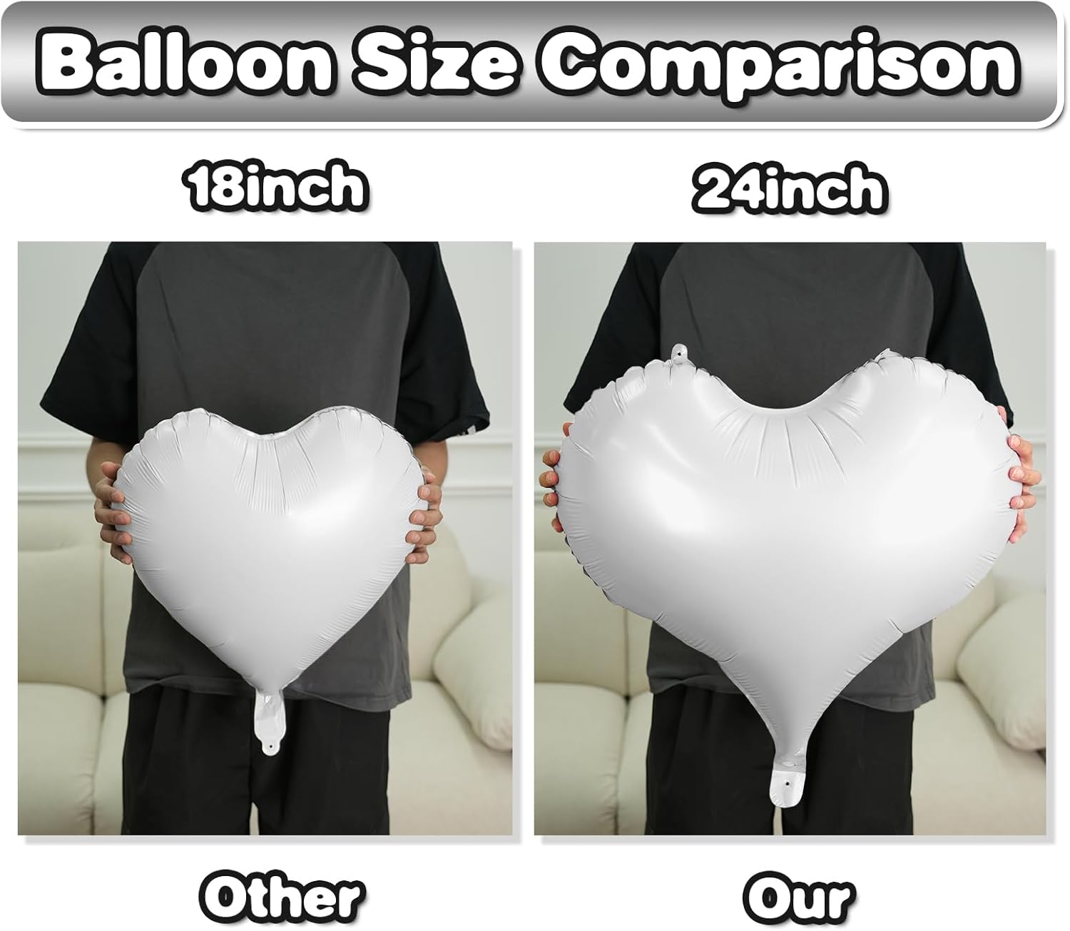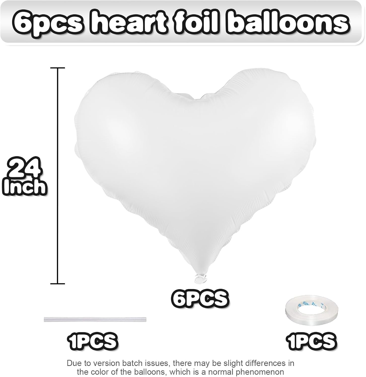 - Package: This set includes 6pcs of 24inch white heart foil balloons,1 ribbon,and 1 straw.The generous size makes these balloons perfect for transforming any space into a festive celebration venue, whether you're decorating for a wedding arch, photo backdrop, or party centerpiece.