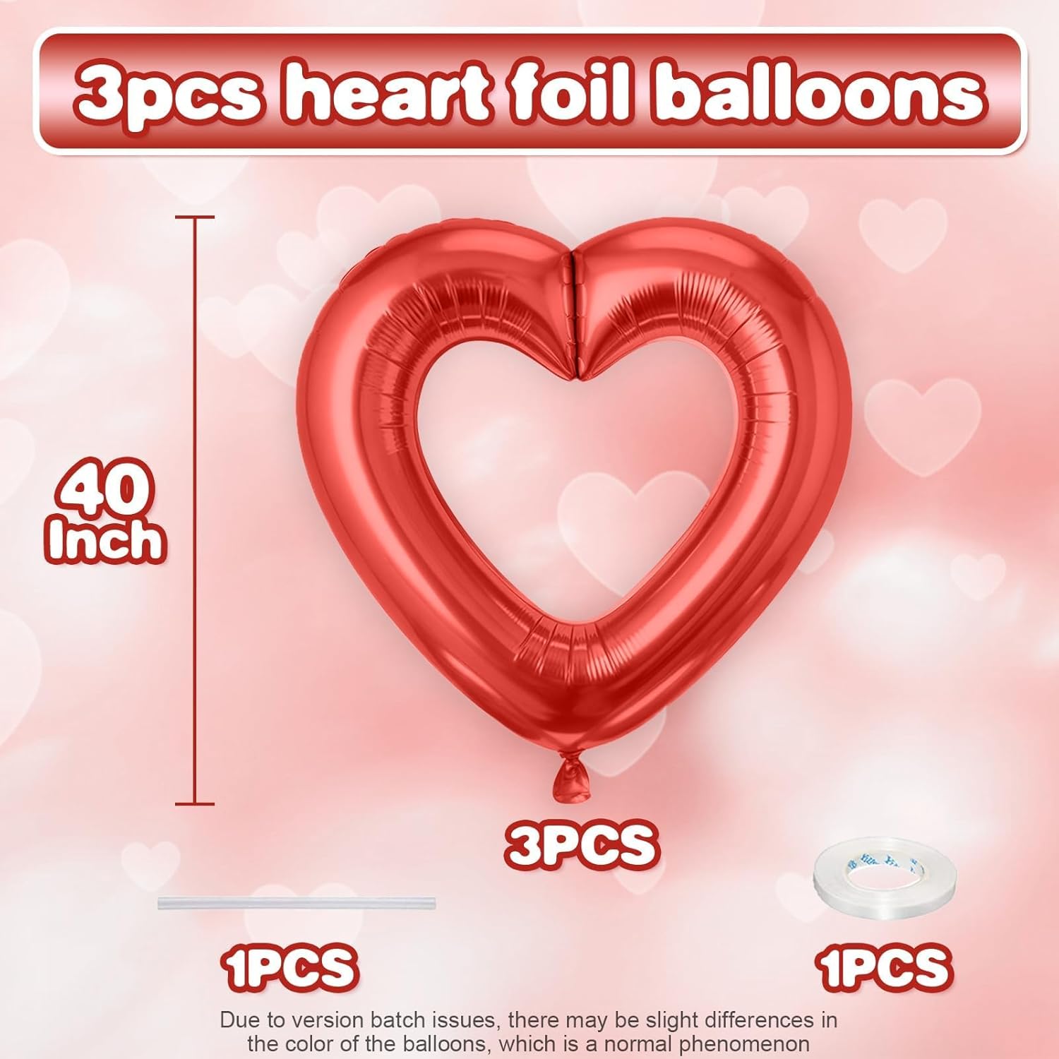 - Package: This set includes 3pcs of 40inch red hollow out heart foil balloons,1 ribbon,and 1 straw.The generous size makes these balloons perfect for transforming any space into a festive celebration venue, whether you're decorating for a wedding arch, photo backdrop, or party centerpiece.