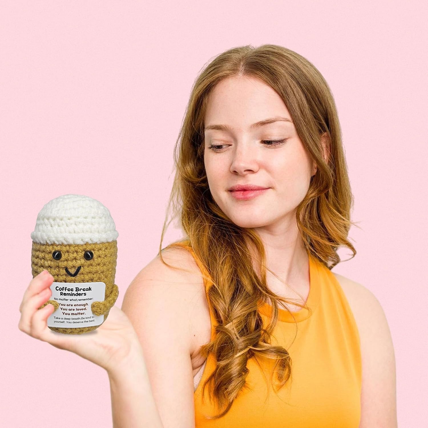Coffee Lovers Birthday Gifts for Women Men,Emotional Support Gifts,Encouragement Little Reminders Present,Positive Coffee Accessories,Crochet Espresso Desk Decorations