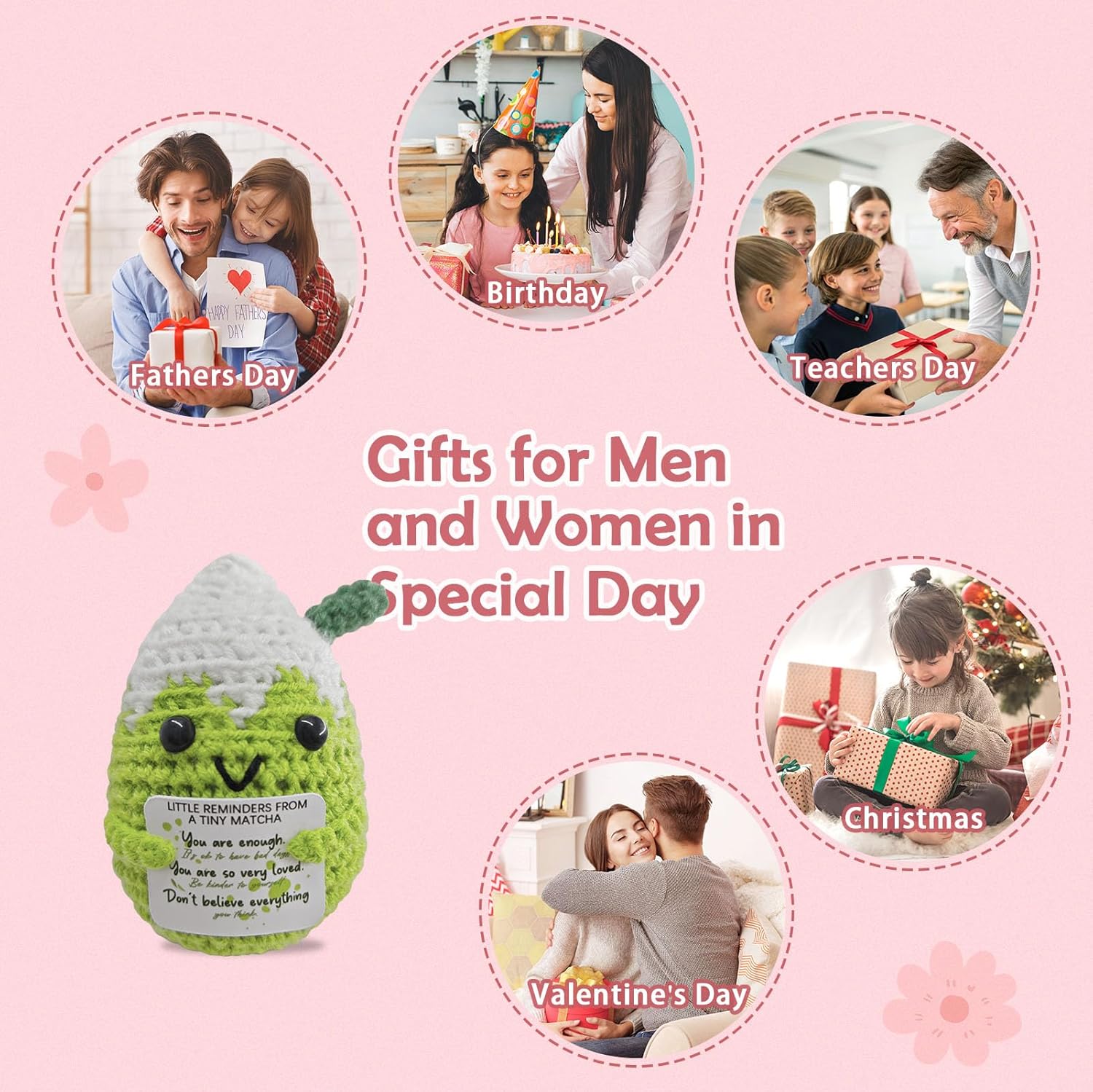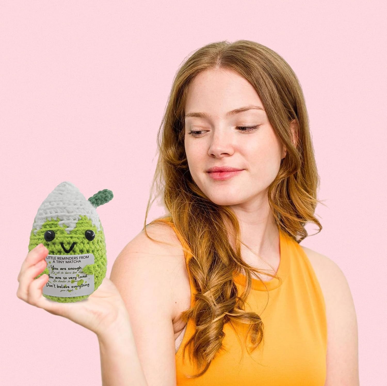 Positive Vibes Crochet Matcha Pal - Uplifting Affirmation Gift for Women,Bestie & Coworkers,Inspirational Christmas Stocking Stuffer