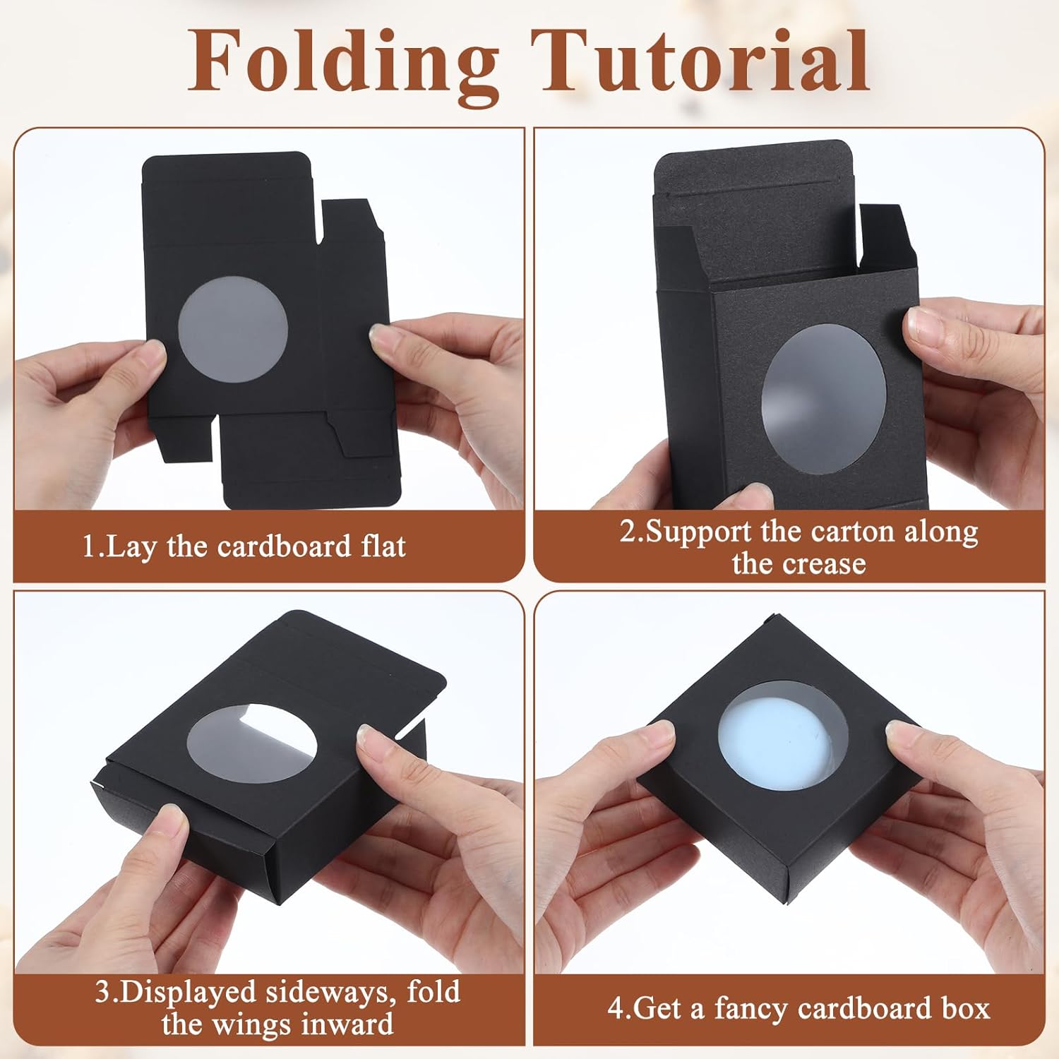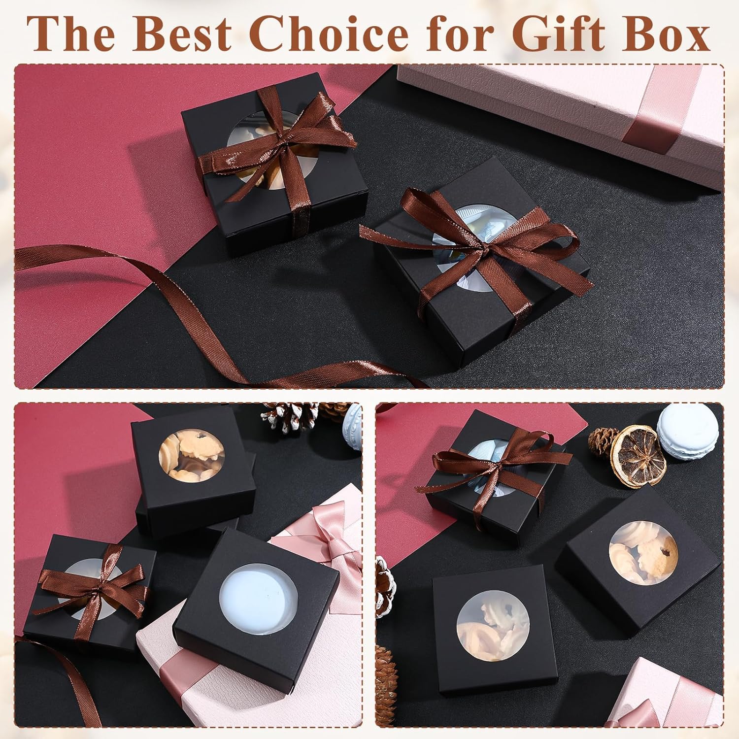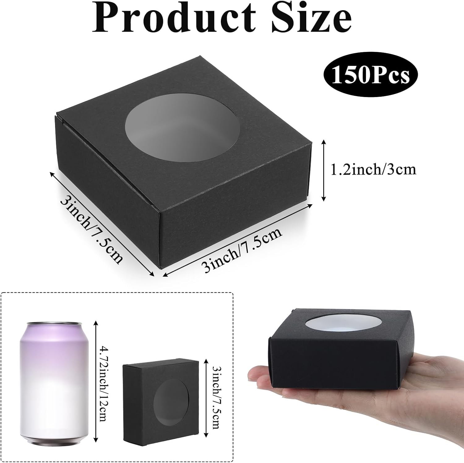 ADLABLD 150 Pcs Small Soap Boxes with Window for Homemade Soap Packaging, 3 * 3 Inch Black Soaps Wrappers Favor Gift Boxes for Homemade Soaps, Candy Chocolate, Bakery Cookies, Party Favor Box