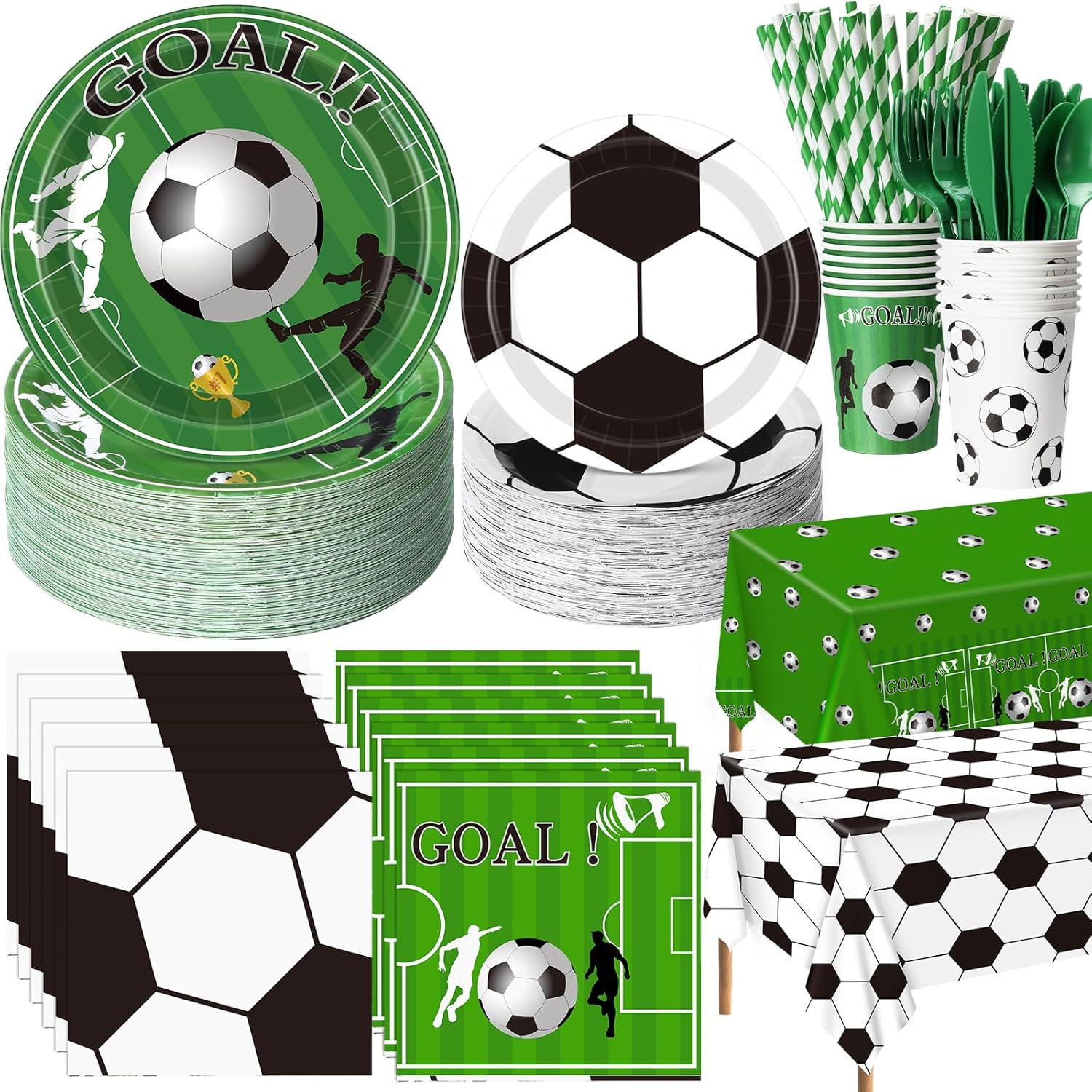 - Designed Soccer Theme: each item in this soccer party tableware set features vibrant soccer patterns, including realistic soccer textures and sporty designs, just like the examples; These decorations are ideal for creating a cohesive soccer theme for kids' birthday parties, soccer viewing parties, or as party favors for boys and girls
