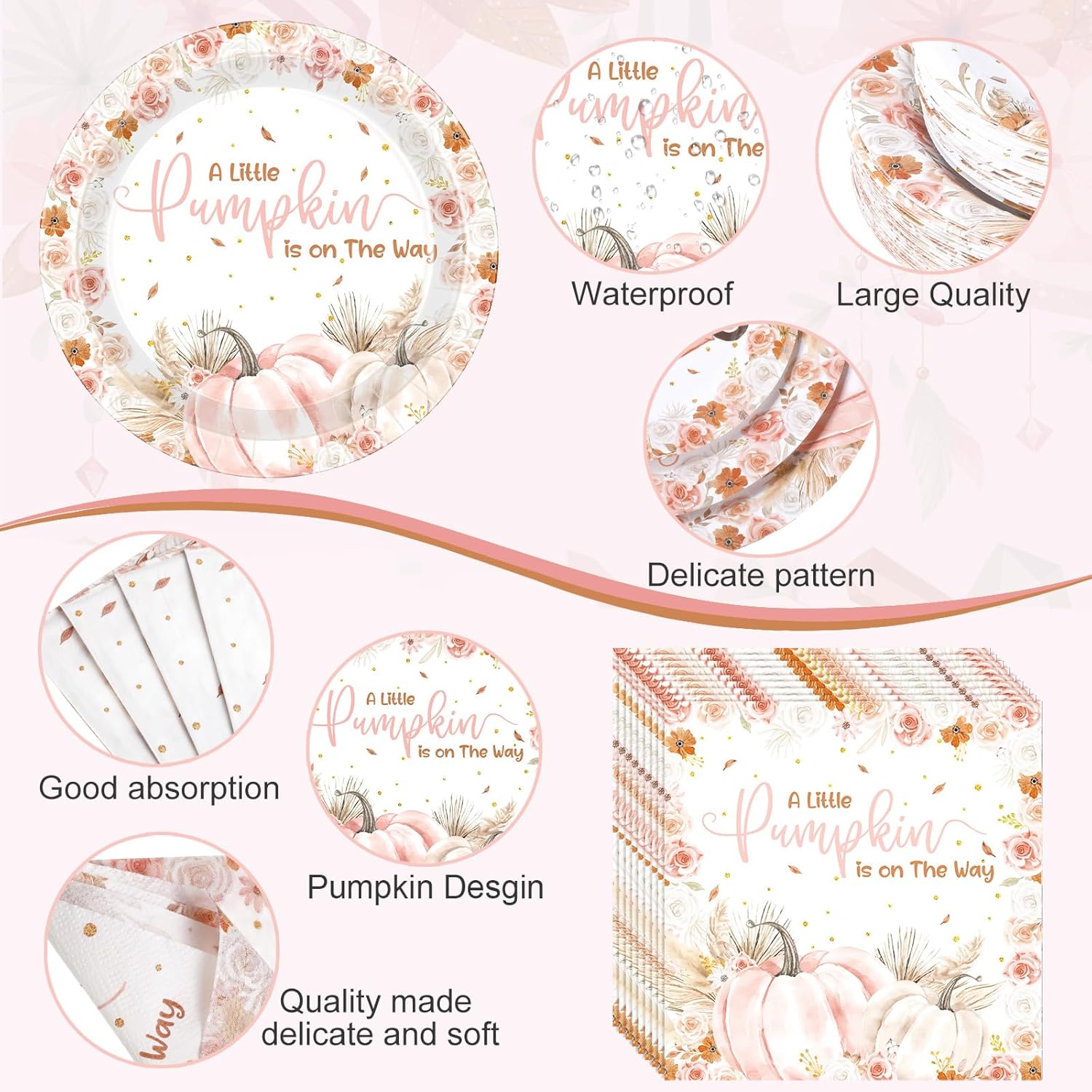 - Wide Application: these little pumpkin tableware set party decorations are good for fall baby showers, Thanksgiving, pumpkin baby shower, fall themed parties, fall themed party, for most ages; They are also fun gifts for your friends and families to add warm atmosphere and make everyone at the party impression