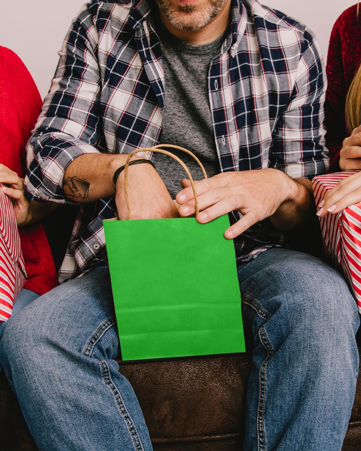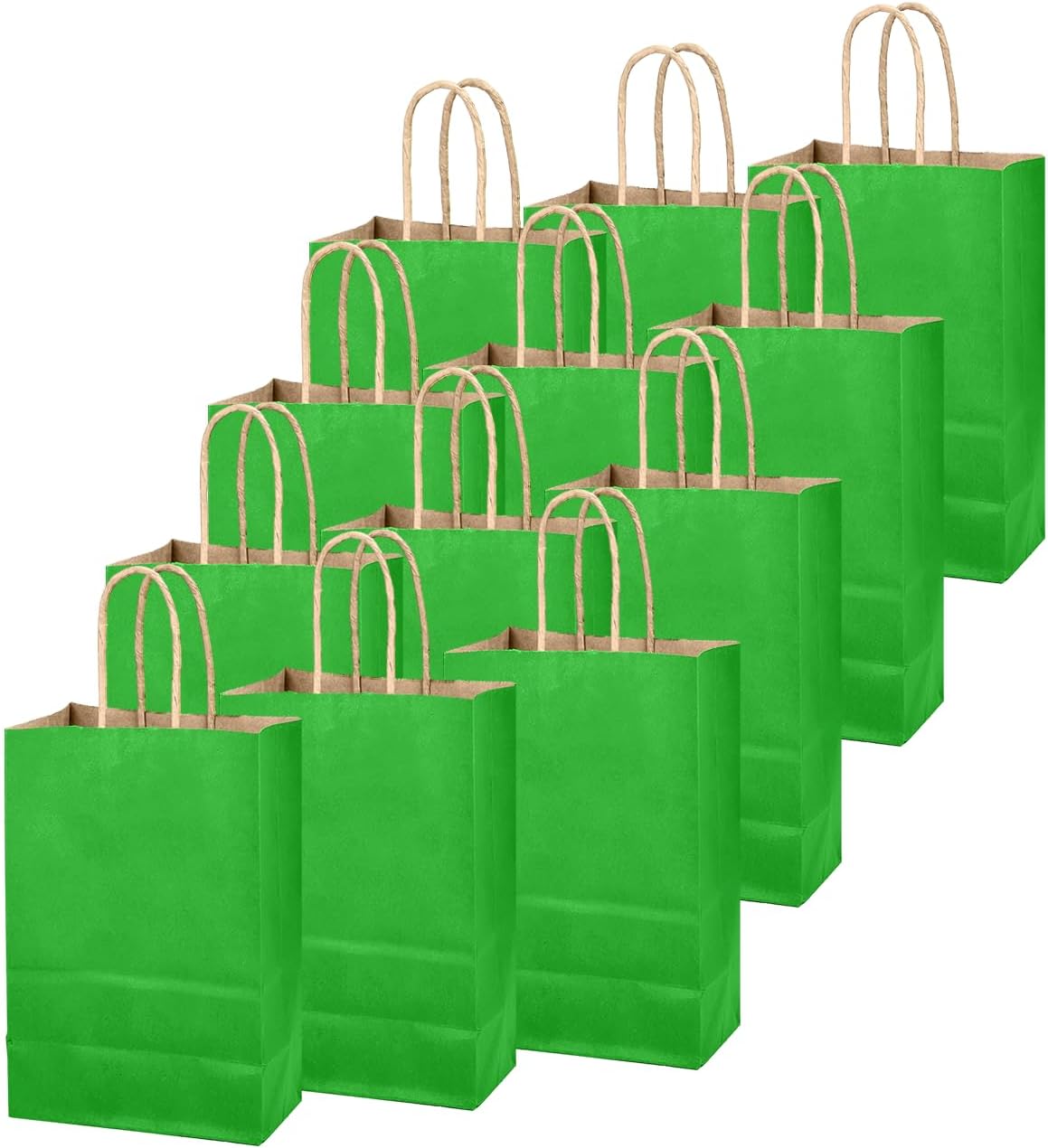 qiqee Bamboo Green Gift Bag with Handles Bulk 24Pcs Paper Bags -8.3"x6"x3. 15" Party Favor Bags - Solid Color