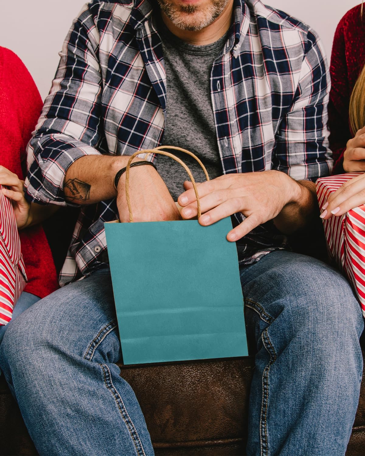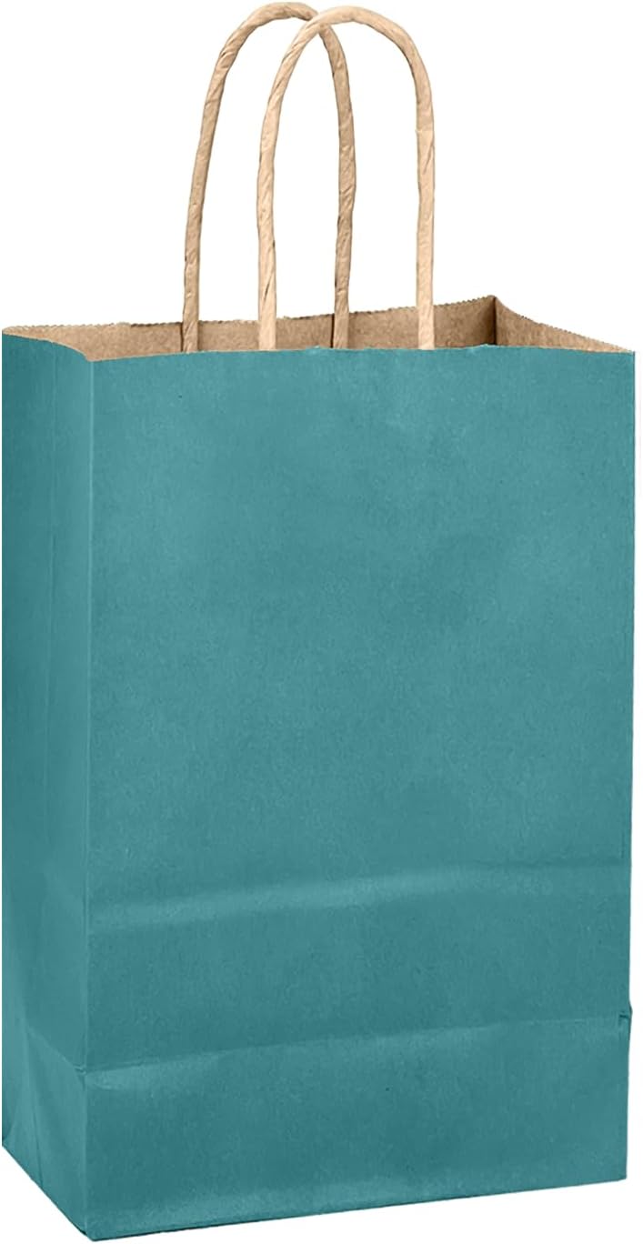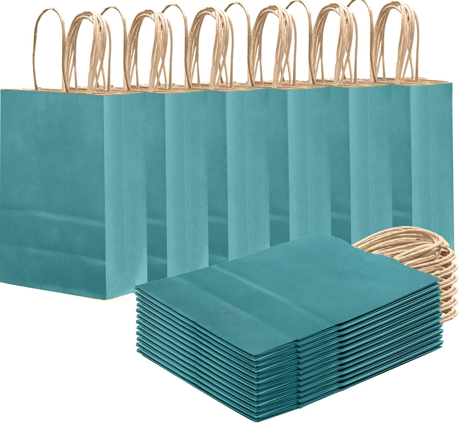 qiqee Slate Blue Gift Bag with Handles Bulk 24Pcs Paper Bags -8.3"x6"x3. 15" Party Favor Bags - Solid Color
