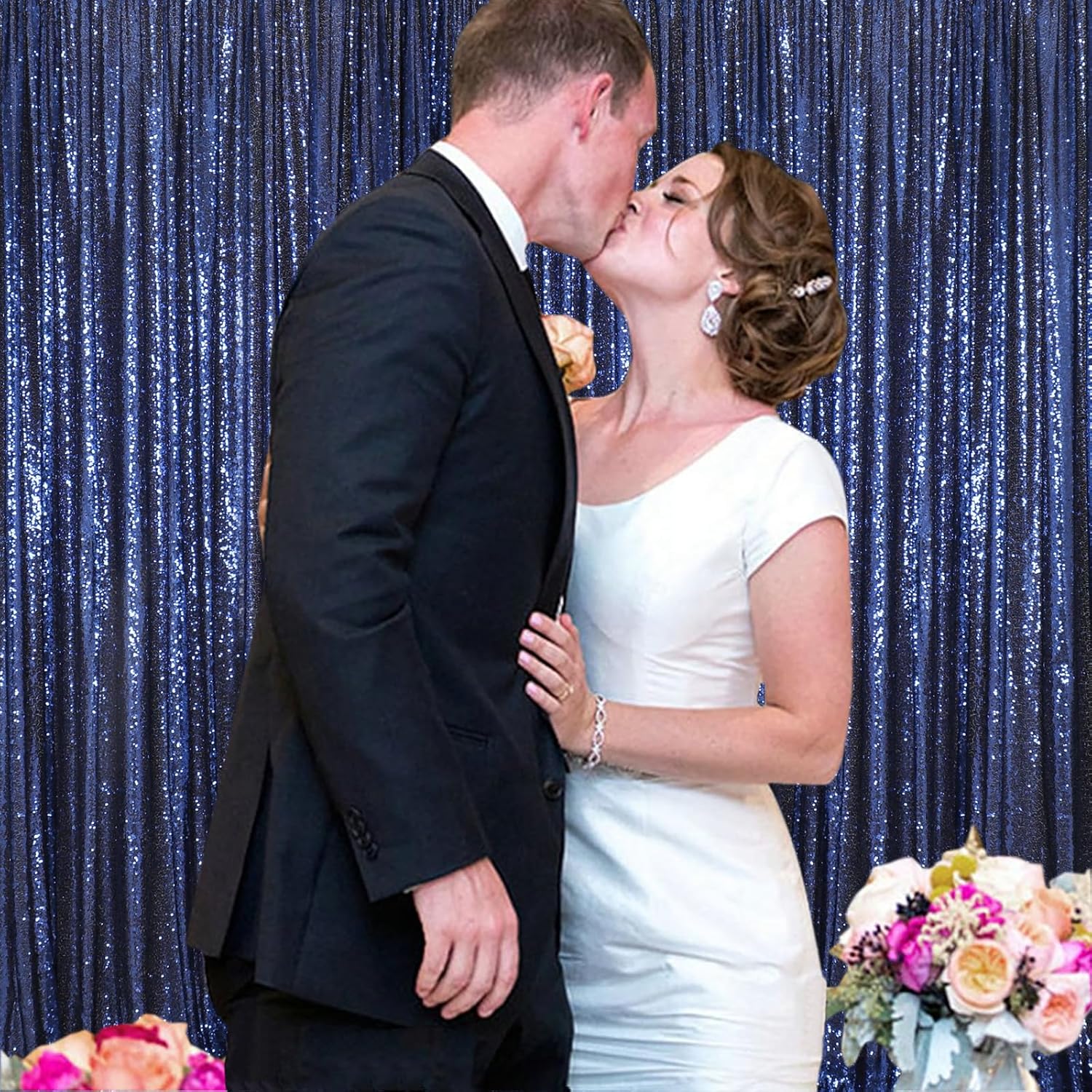 ShinyBeauty Navy Blue Sequin Backdrop 4x10ft (4 Panels) - Christmas Party Photo Booth, Winter Wedding Decor, Sparkle Curtain