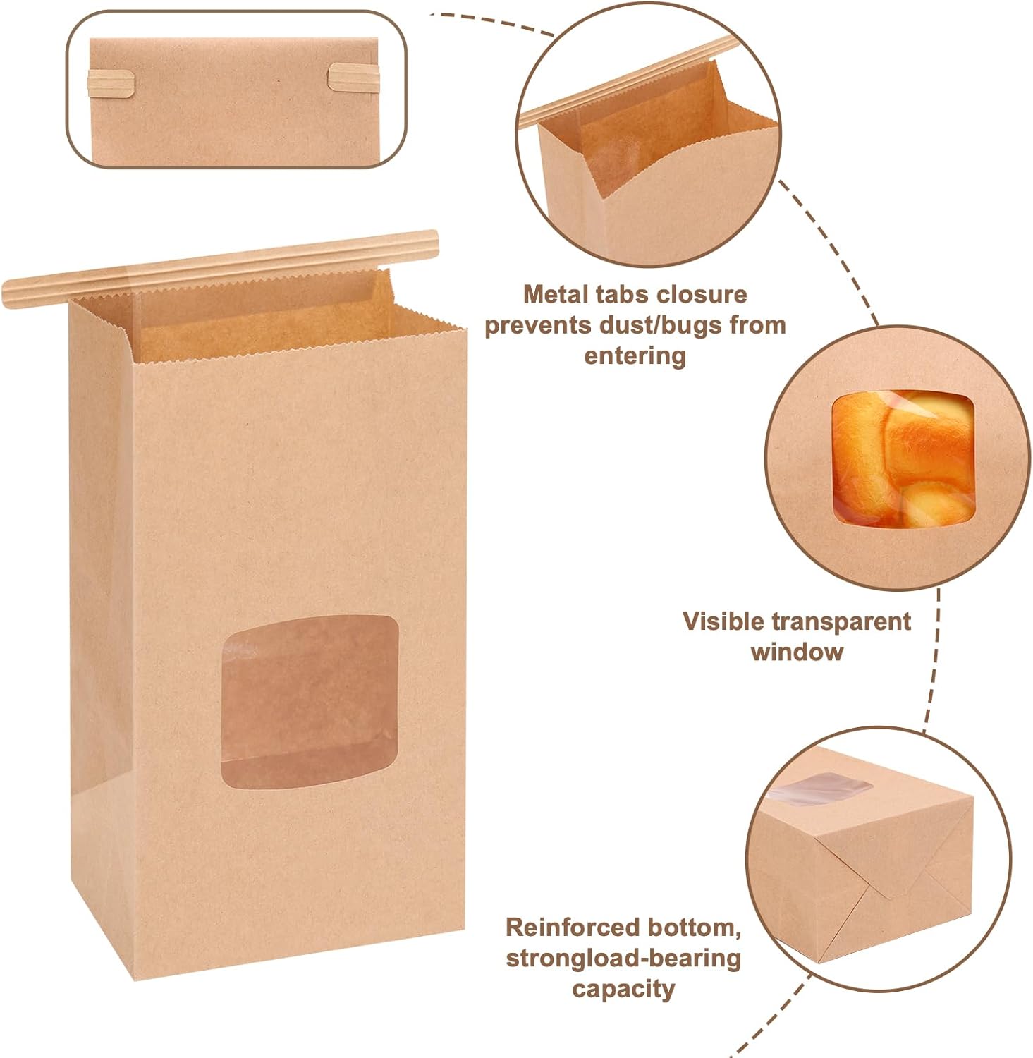 Moretoes 55pcs Small Bakery Bags with Window, 3.54x2.36x6.7in Tin Tie Tab Kraft Paper Bags for Cookie Coffee Bread Bakery Packing
