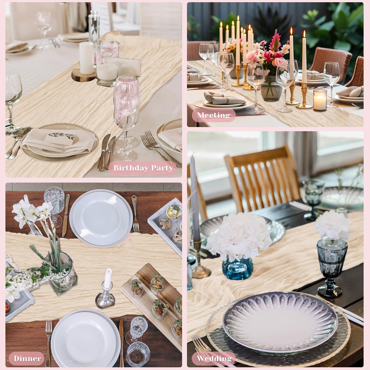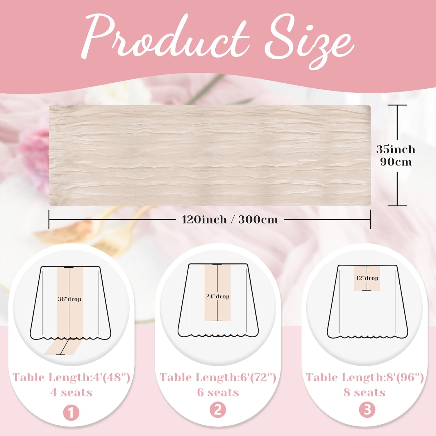 - Artistic Pleats in Motion: The cheesecloth table runner comes with pleated texture. The edges are made with seamless technology, and the stitches are firm and smooth, effectively preventing frayed edges. It showcases a delicate texture. When placed, it creates a natural drooping effect. Without any special care, it can create a sophisticated texture, instantly elevating the artistic atmosphere of your table.