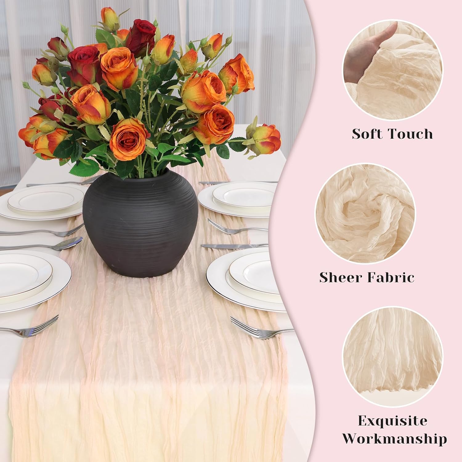 Champagne Table Runner, 10Ft 120in Cheesecloth Table Runner, Gauze Rustic Cheese Cloth Table Runners for Wedding, Party, Bridal Shower, Boho Table Runners for Christmas Thanksgiving Halloween Easter
