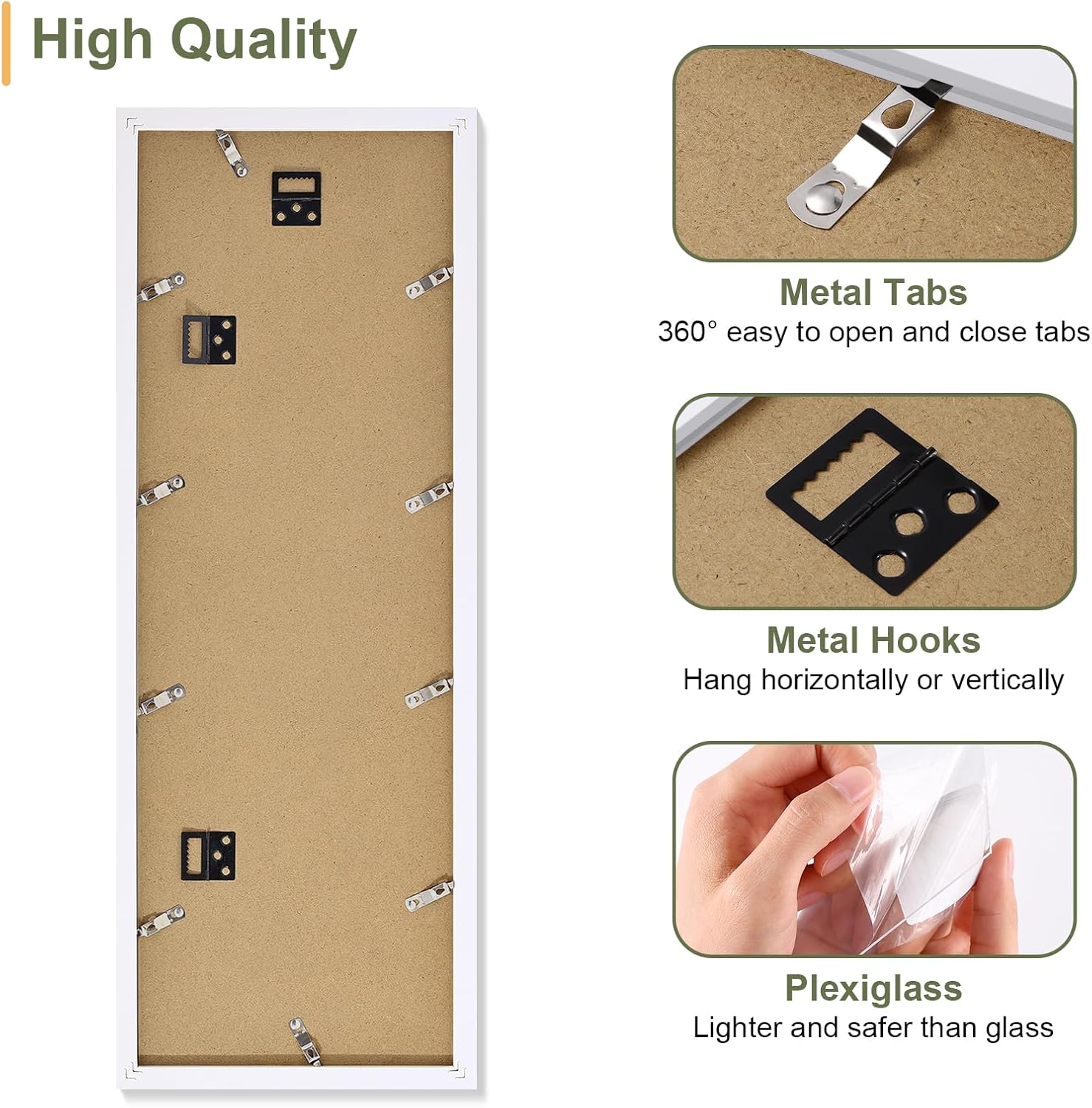 - Perfect Photo Fit: The 8x24 collage frame holds five 4x6 photos with mat or one 8x24 photo without mat. Each 4x6 opening is designed 0.5 inches smaller for a secure grip in this 8x24 frame