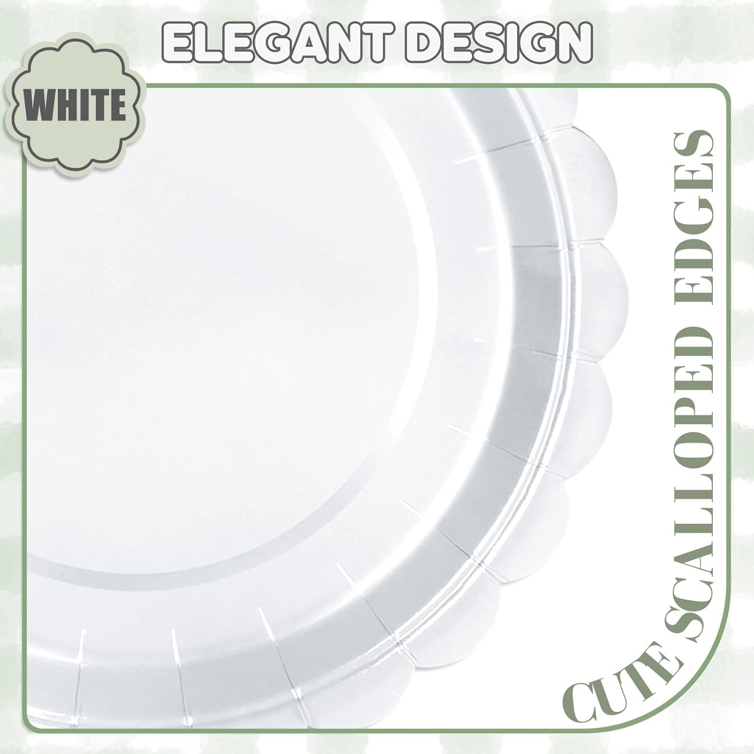 - Exquisite Scalloped Edge Design: Different From The Regular Round Paper Plates. Our Disposable White Plates Are Designed With Scalloped Edges, Highlighting The Elegance And Beauty Of The Tableware, Which Can Better Decorate Your Party Table.Creating A Stunning Table Display That Your Guests Will Remember Long After The PartyโS Over