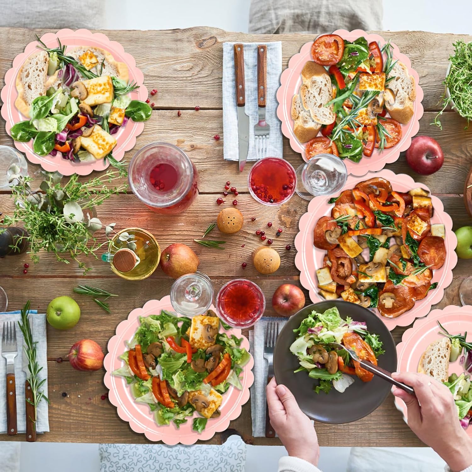 - Exquisite Scalloped Edge Design: Different From The Regular Round Paper Plates. Our Disposable Pink Plates Are Designed With Scalloped Edges, Highlighting The Elegance And Beauty Of The Tableware, Which Can Better Decorate Your Party Table.Creating A Stunning Table Display That Your Guests Will Remember Long After The PartyโS Over