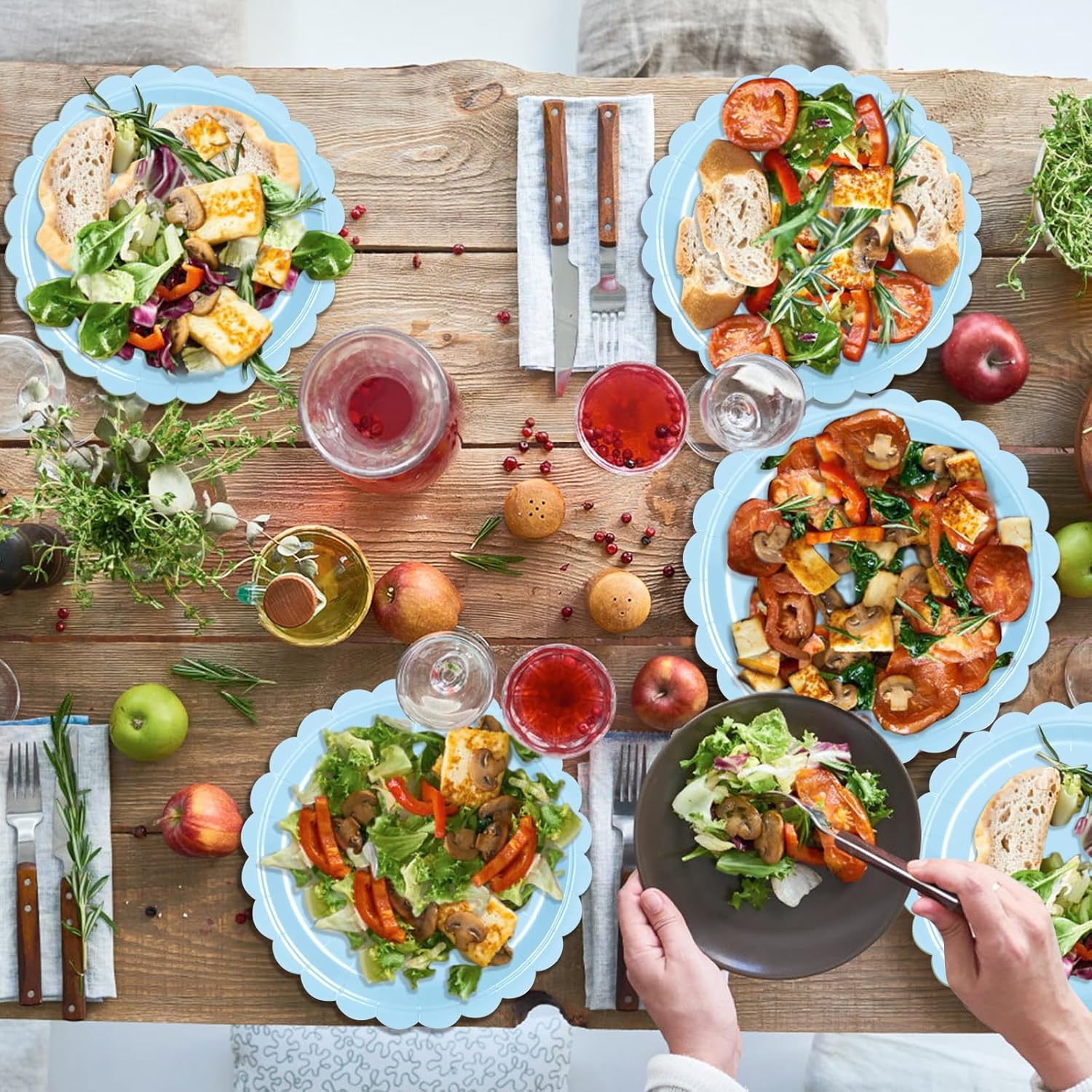 - Exquisite Scalloped Edge Design: Different From The Regular Round Paper Plates. Our Disposable Light Blue Plates Are Designed With Scalloped Edges, Highlighting The Elegance And Beauty Of The Tableware, Which Can Better Decorate Your Party Table.Creating A Stunning Table Display That Your Guests Will Remember Long After The PartyโS Over