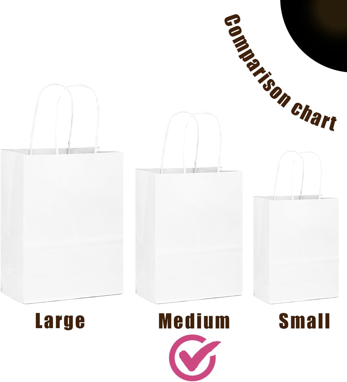 qiqee 50-Packs White Paper Gift Bags with Handles Bulk 11"x8.3"x4.3" Medium Size Paper Bags Multiple Uses