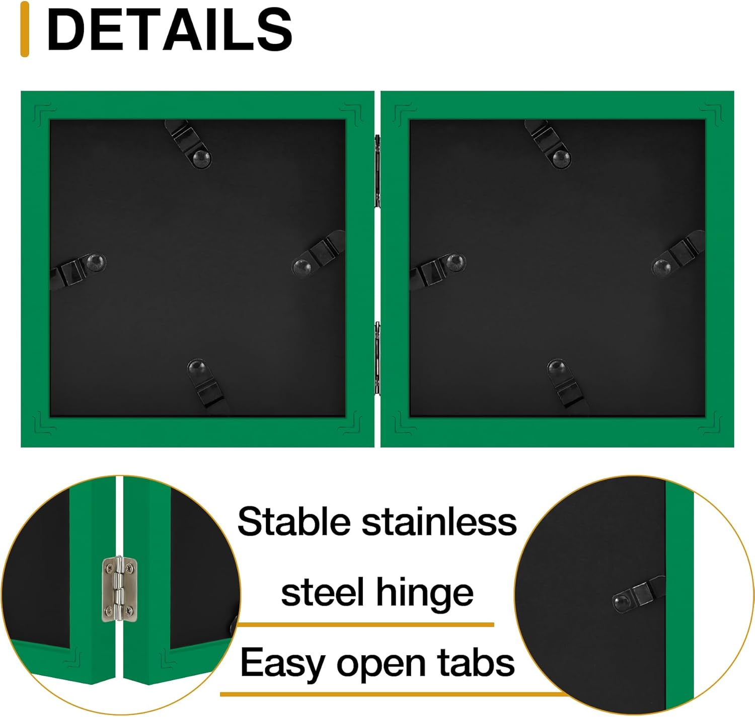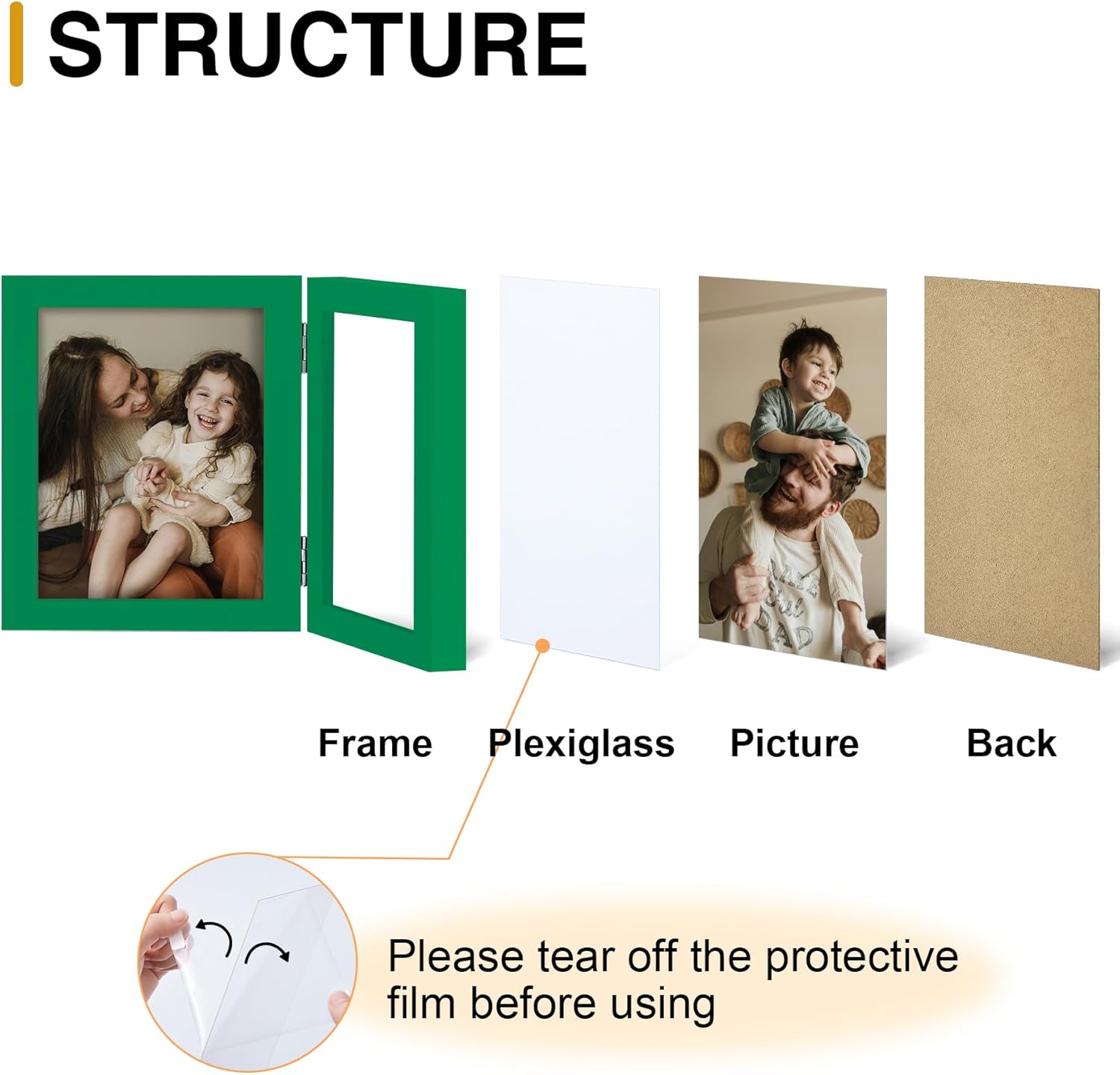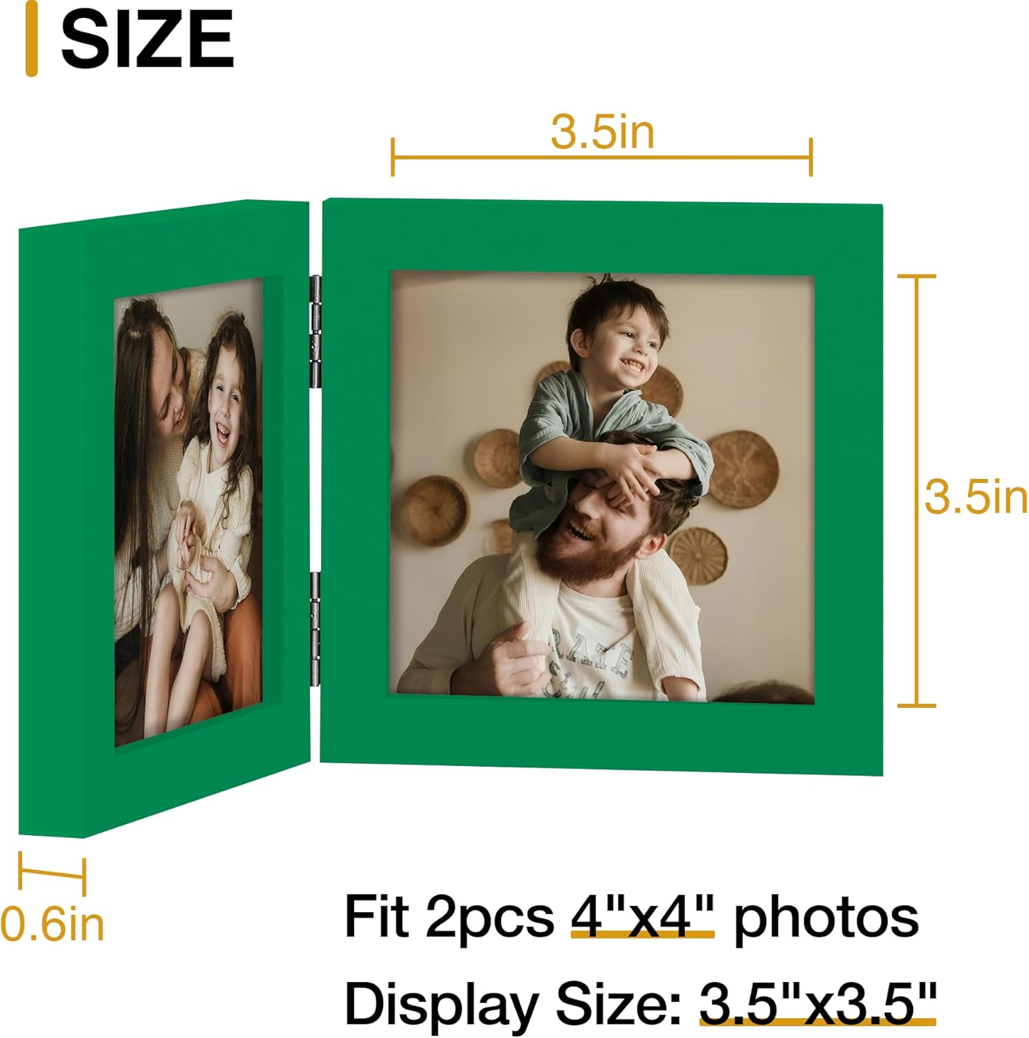 decorUhome Double 4x4 Picture Frame Vertical, Engineered Wood Bifold Photo Frame with Plexiglass for Tabletop Display, 4x4, Green