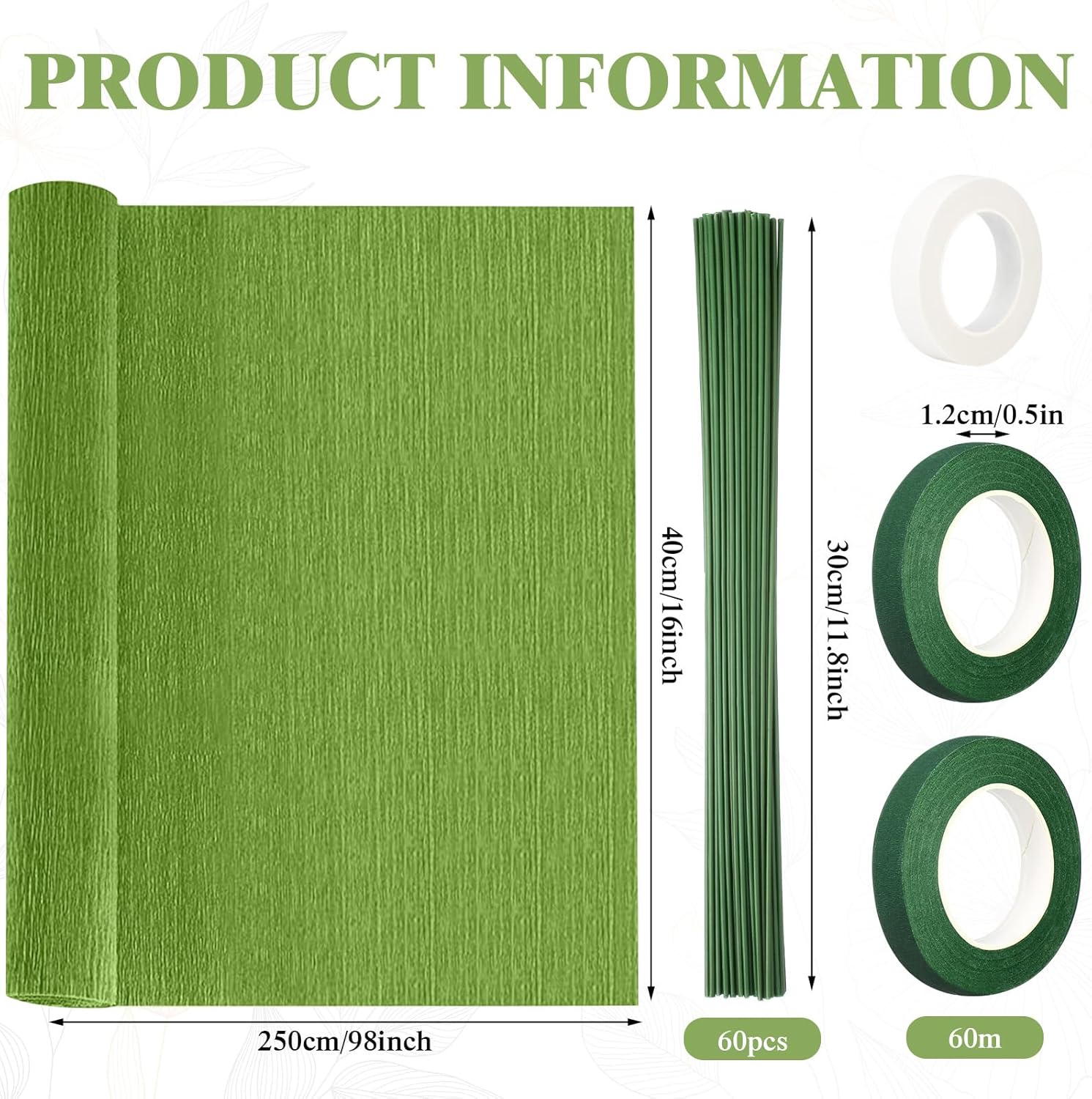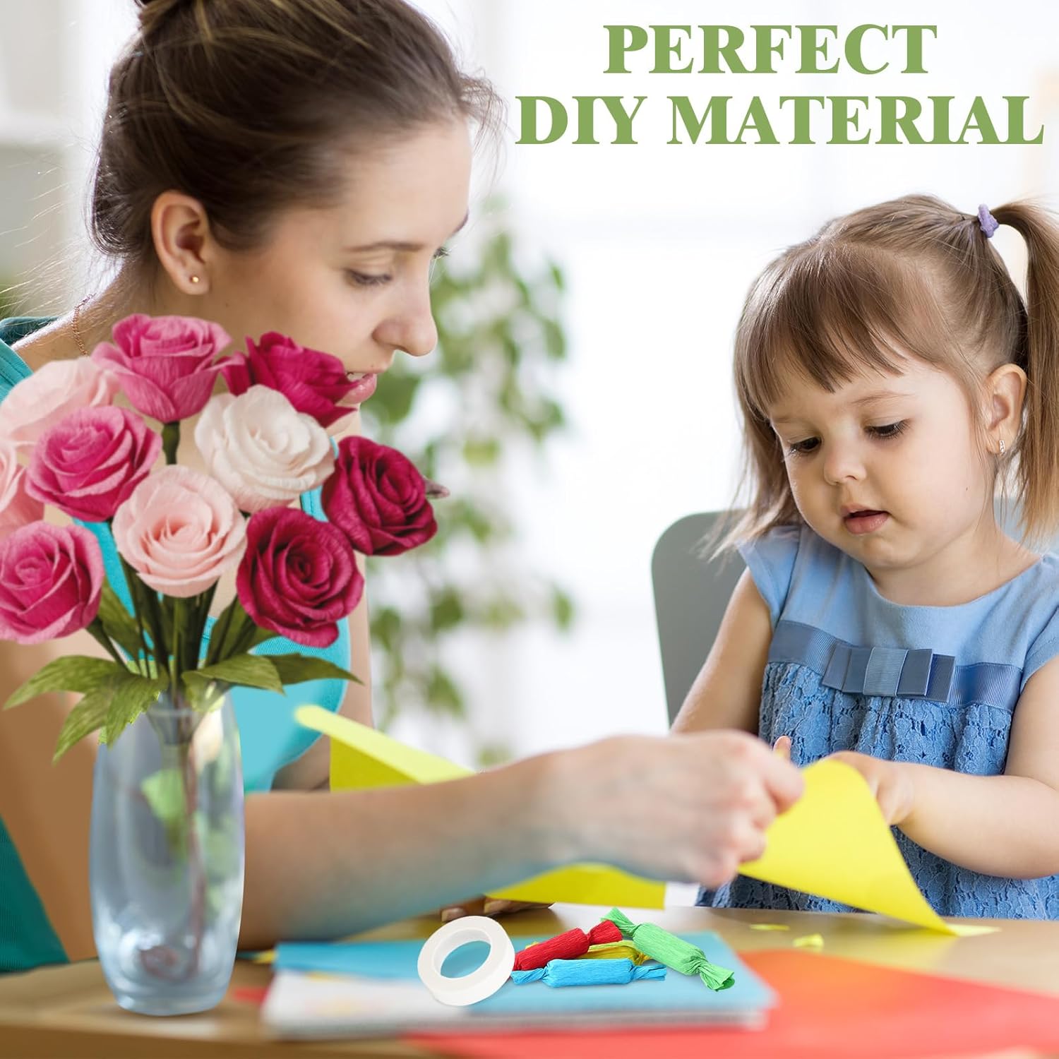 - Quality Materials: our crepe paper flower kit is not easy to tear or fade, feels comfortable, has no odor, and is suitable for all kinds of DIY; The green iron wire is soft and flexible, can be easily bent into shape you want, and the tape is stretchable, easy to stick with ideal adhesion