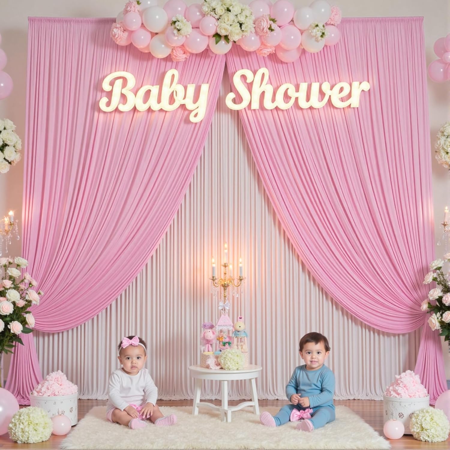 - 【Easy to Care&Reusable Photo Backdrop】- Wrinkle free polyester backdrop curtains make the baby pink drape more easier to care, not need iron requirement( please low temperature if need), machine wash and dryable, very easy to store for next parties.
