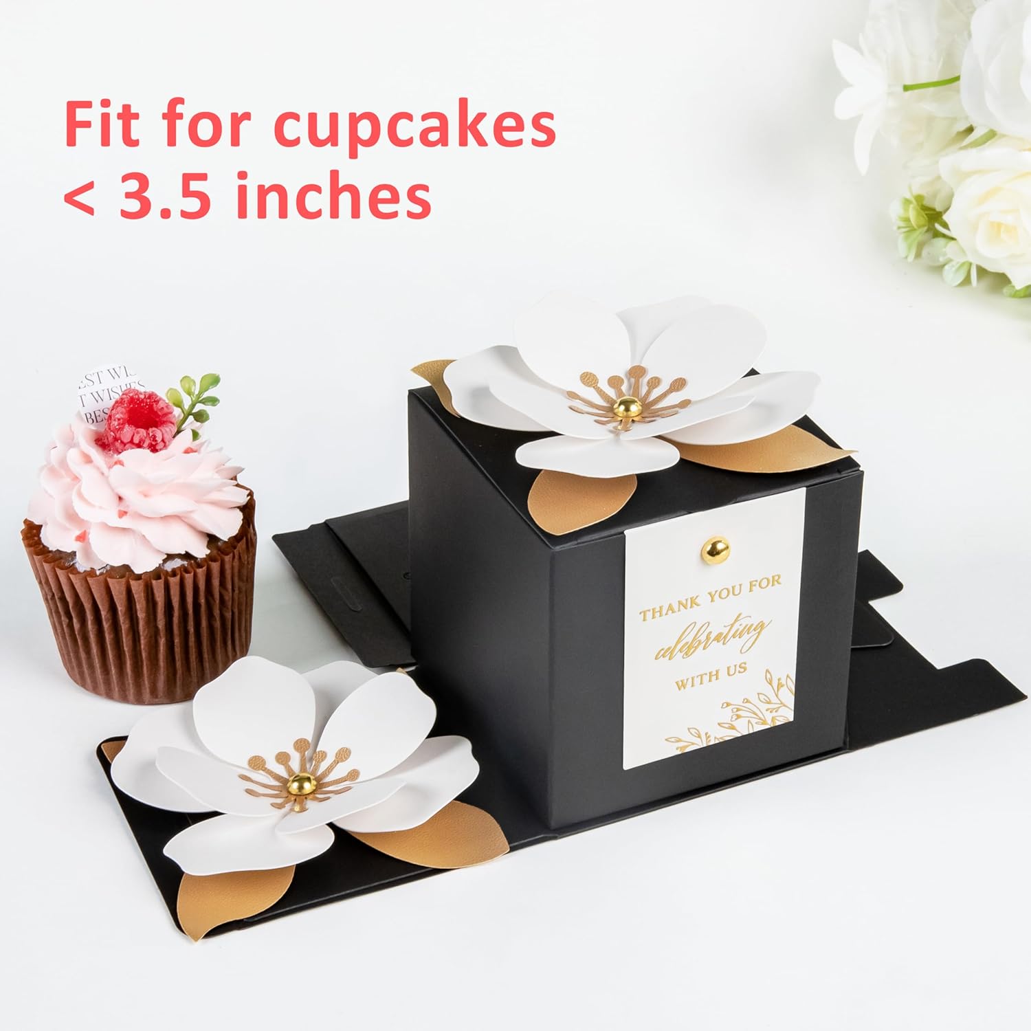 FEIYI 20 PCS Black Gift Boxes, 3 In 1 Favor Boxes with Floral Decor, White Thank You Tags Cupcake Containers Gift wrapping for Wedding, Baby Shower, Birthday, Decorations Party - 3.55x3.55x3.55