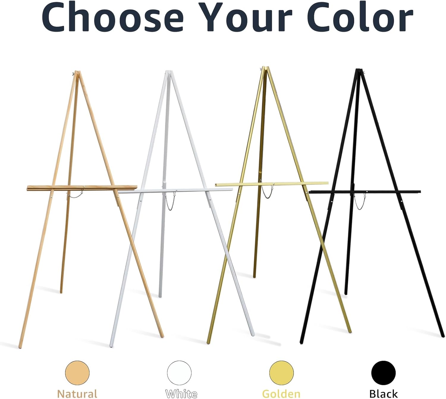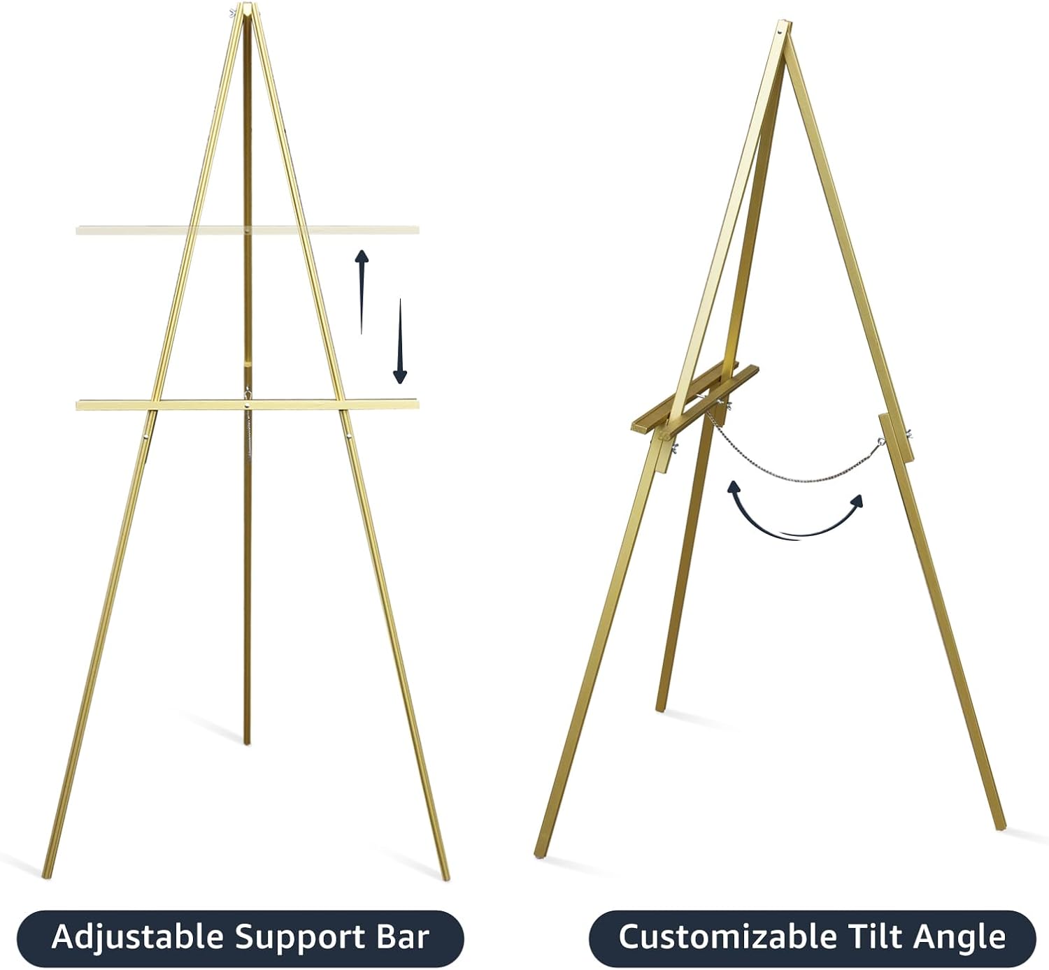 nianfeng Wooden Easel Stand for Sign, Easel Display Stand Floor for Wedding Sign With Adjustable Tray, 63-Inch, Tripod A-Frame Poster Light Duty, Welcome, Art Show & Baby Shower (Golden)