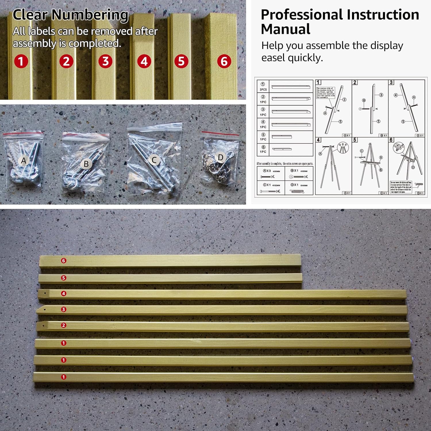 - Easy to Assemble Display Easel: Each wooden component is connected by wing nuts and bolts, allowing assembly without the need for tools. It comes with detailed assembly instructions, and each part is clearly labeled for easy identification and assembly